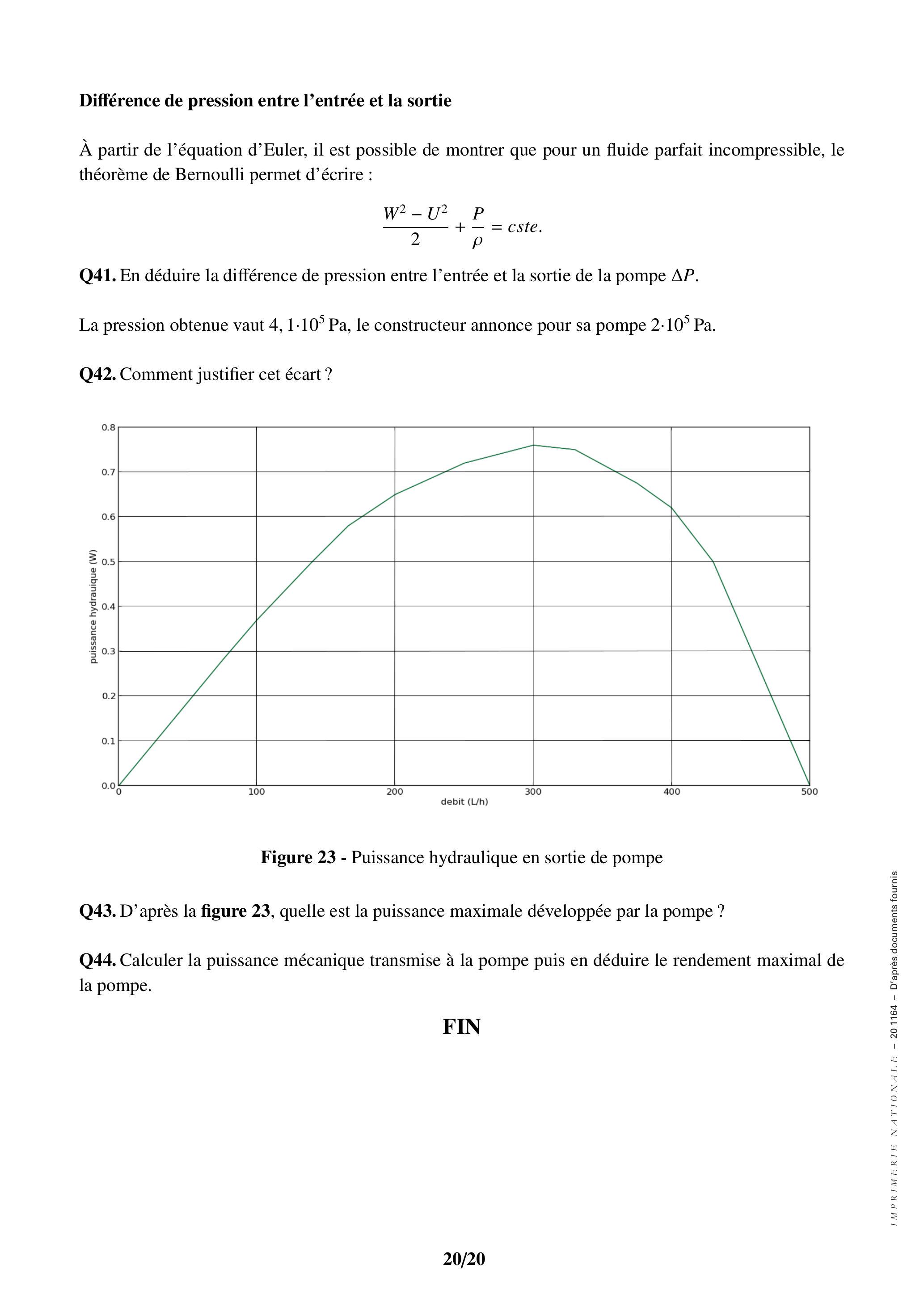 Q41. En déduire la différence de pression entre l'entrée et la sortie de la pompe .