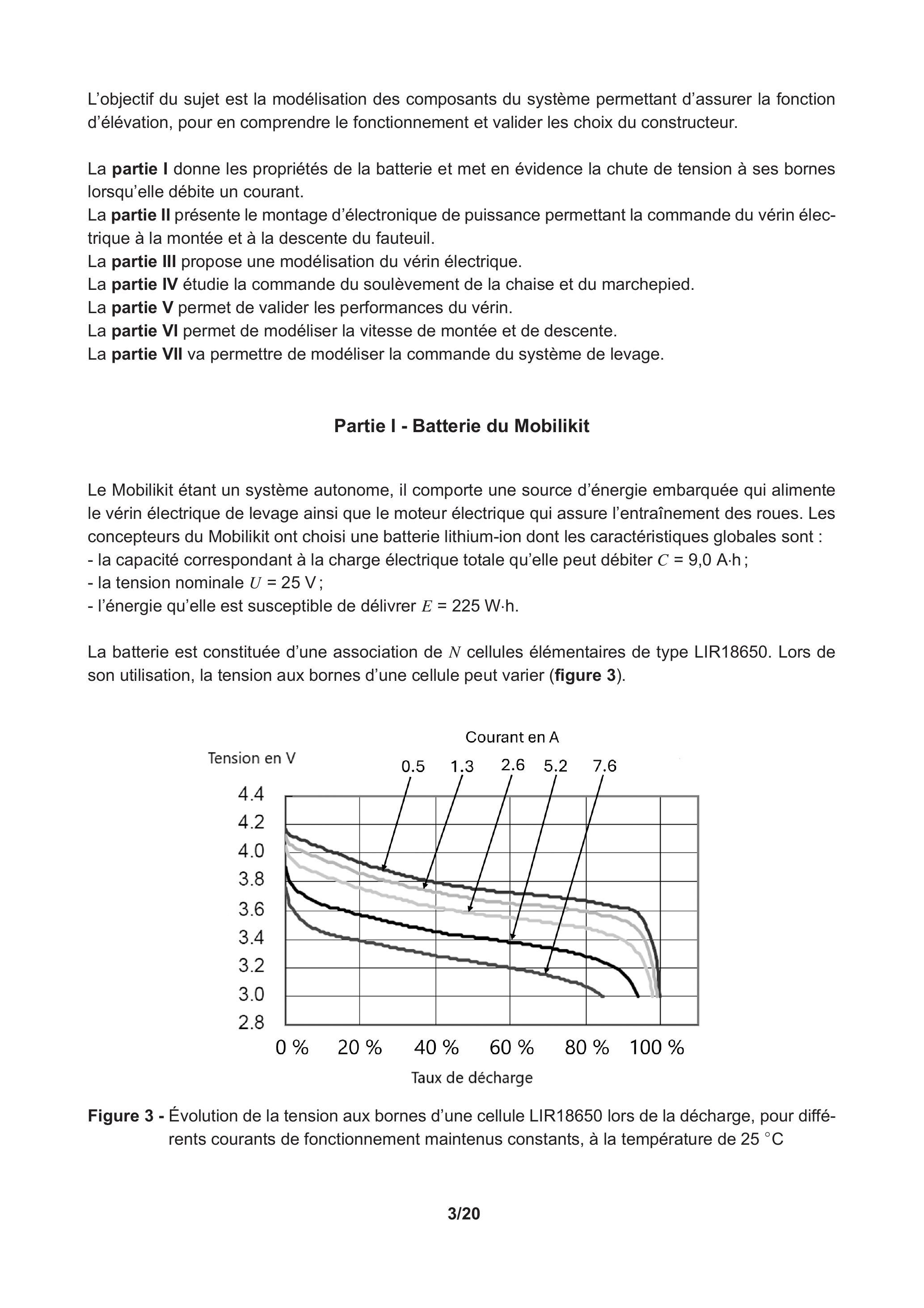 La batterie est constituée d'une association de cellules élémentaires de type LIR18650. Lors de son utilisation, la tension aux bornes d'une cellule peut varier (figure 3).