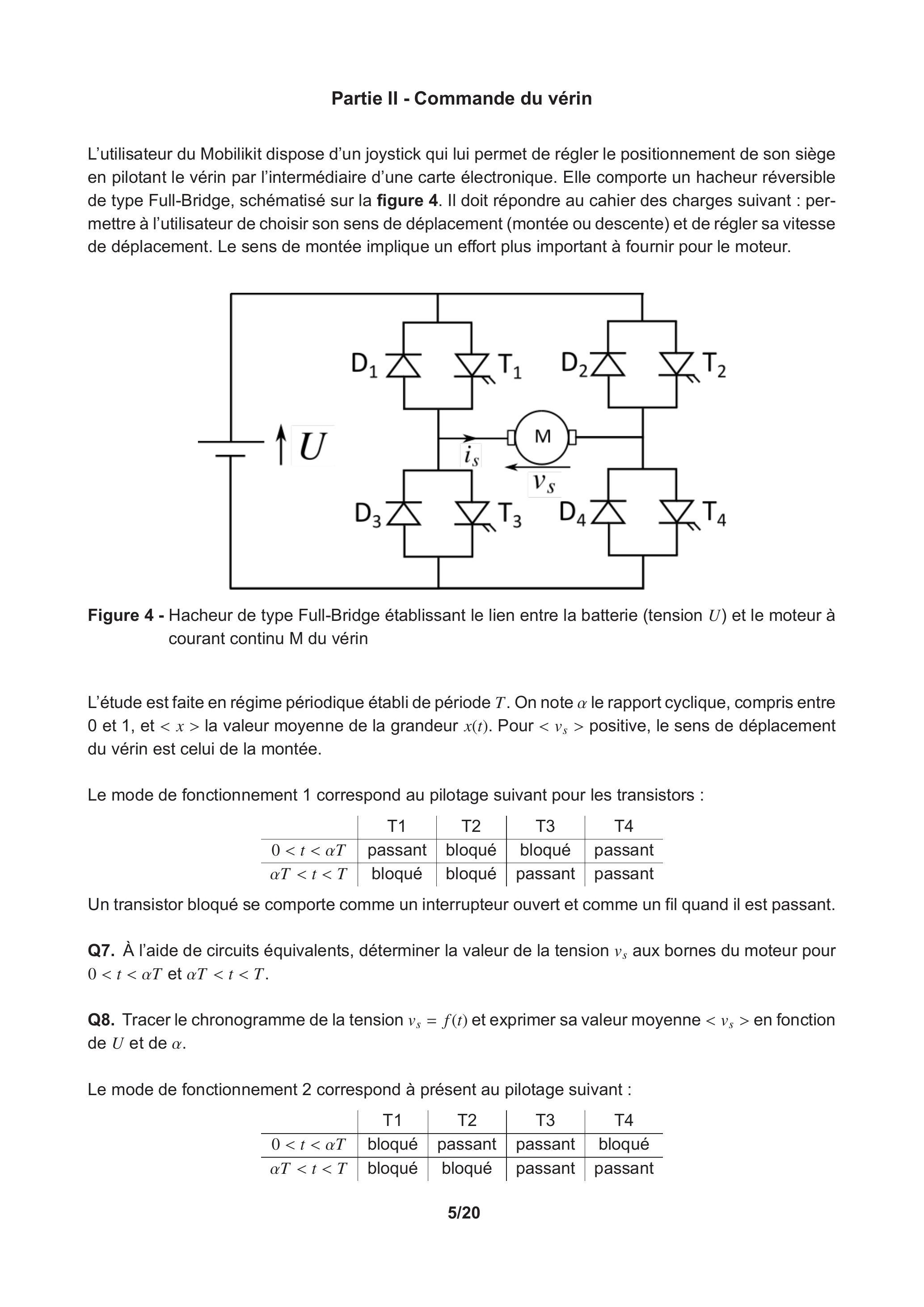 Q9. Sans justification, tracer le chronogramme de pour le mode de fonctionnement 2. En déduire la valeur moyenne .