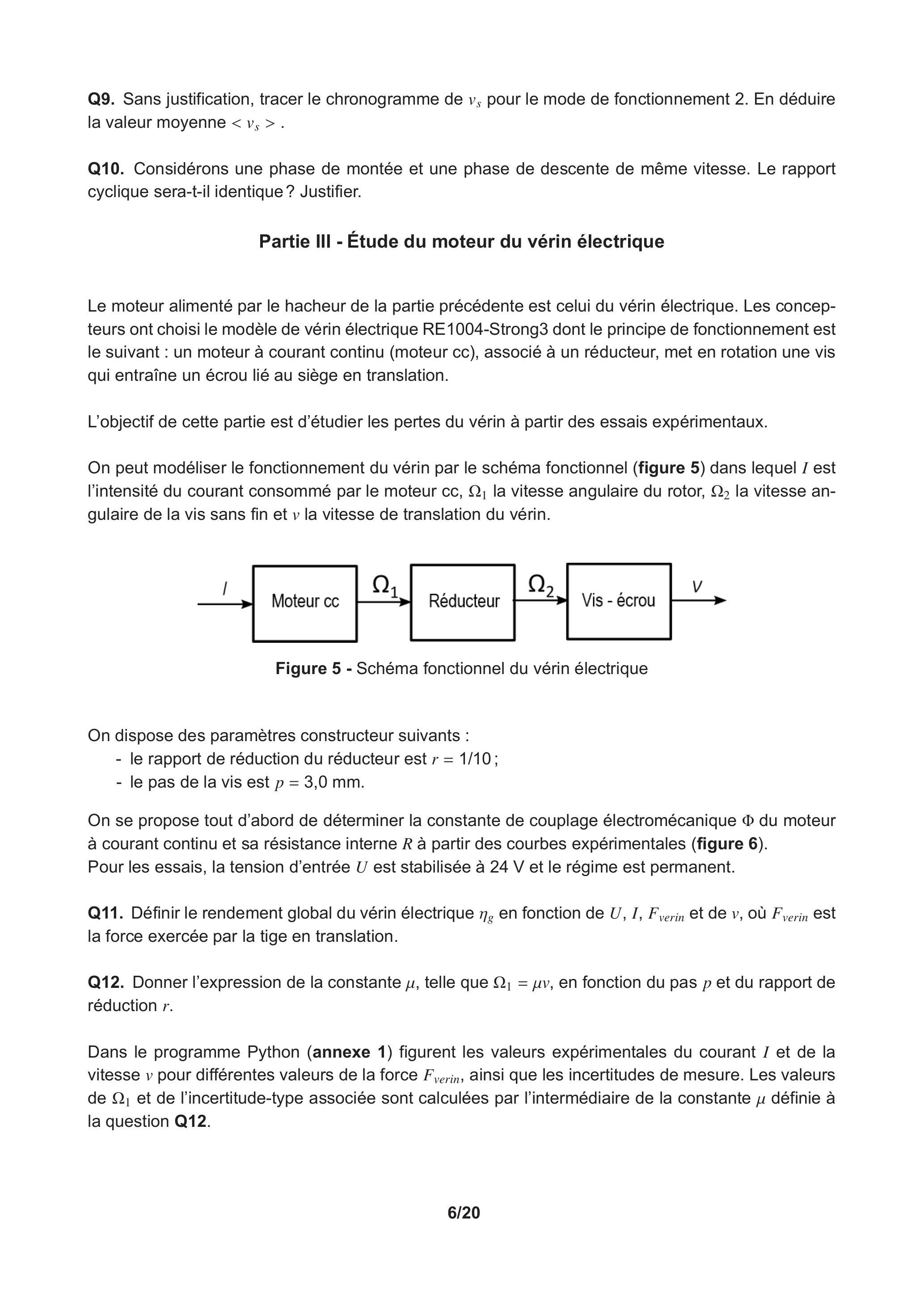 Q11. Définir le rendement global du vérin électrique en fonction de et de , où est la force exercée par la tige en translation.