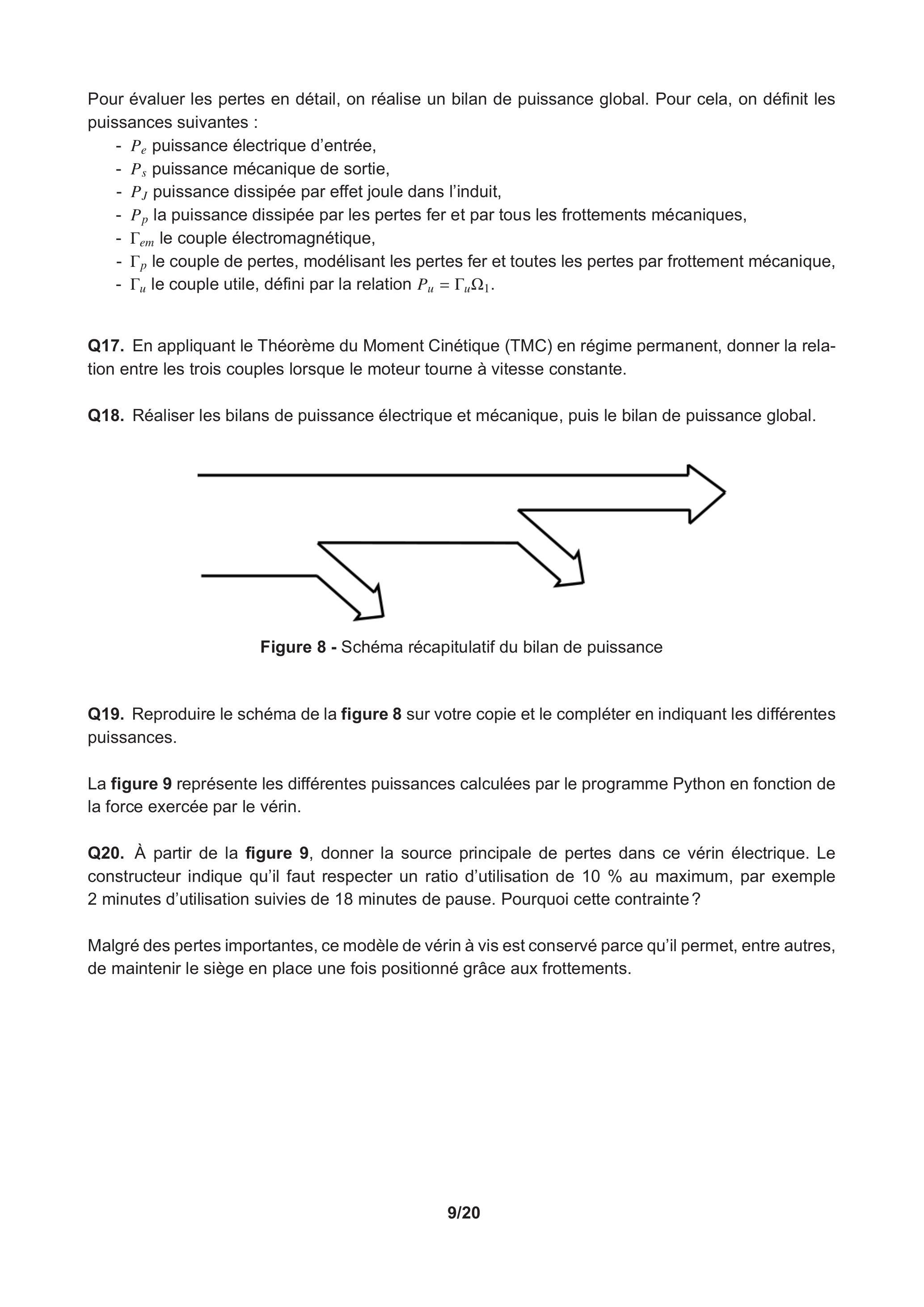 Q20. À partir de la figure 9, donner la source principale de pertes dans ce vérin électrique. Le constructeur indique qu'il faut respecter un ratio d'utilisation de au maximum, par exemple 2 minutes d'utilisation suivies de 18 minutes de pause. Pourquoi cette contrainte?