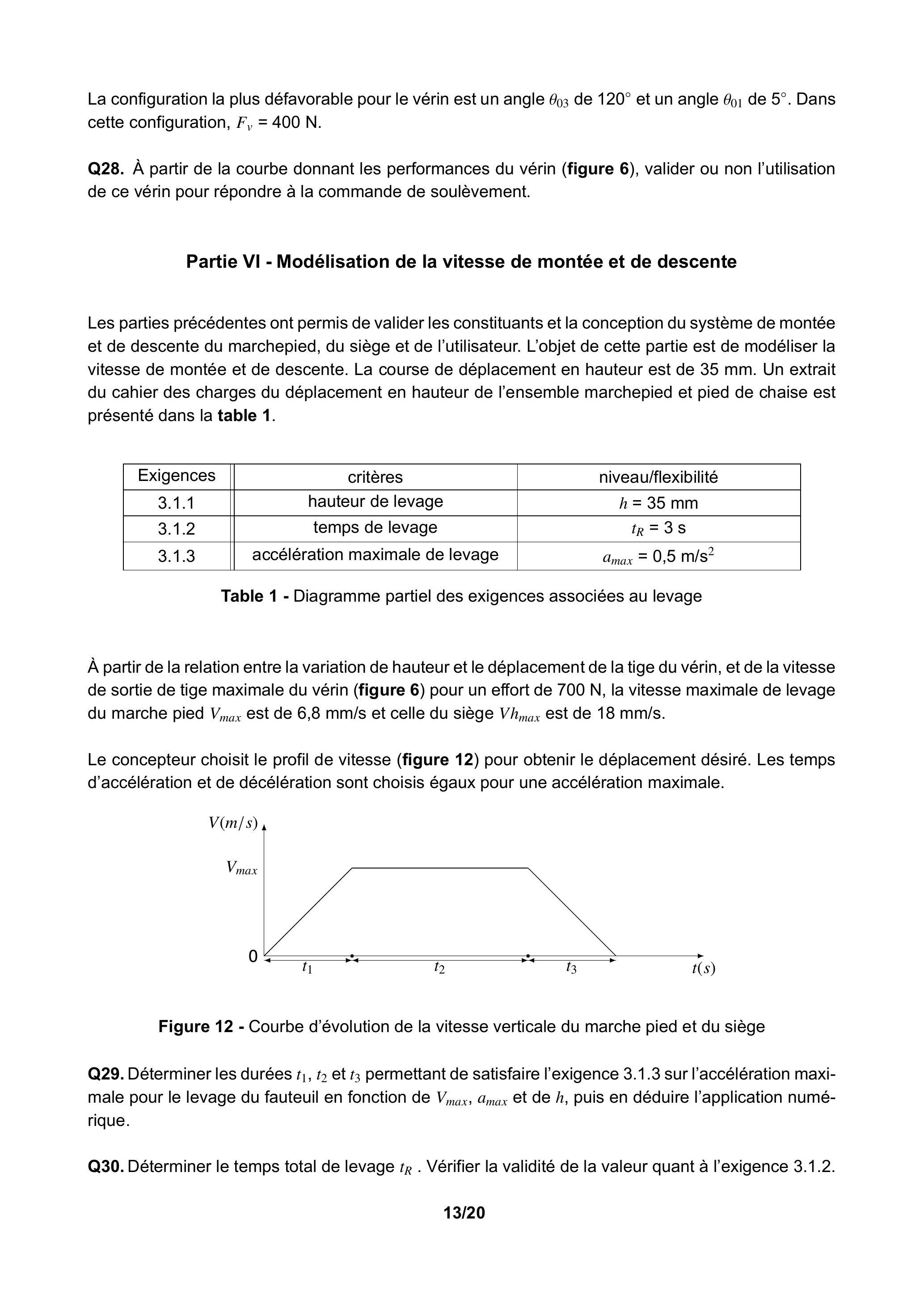 La partie IV étudie la commande du soulèvement de la chaise et du marchepied.