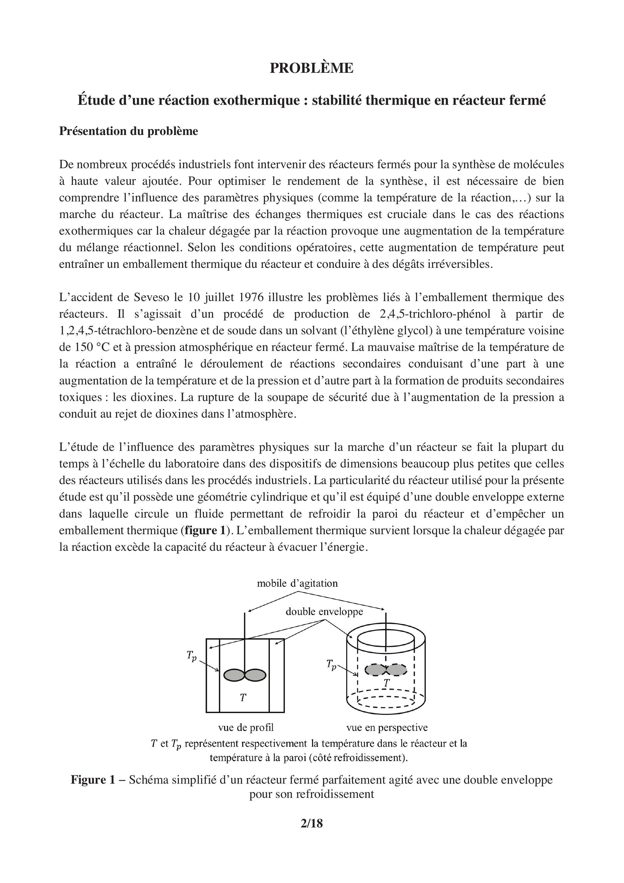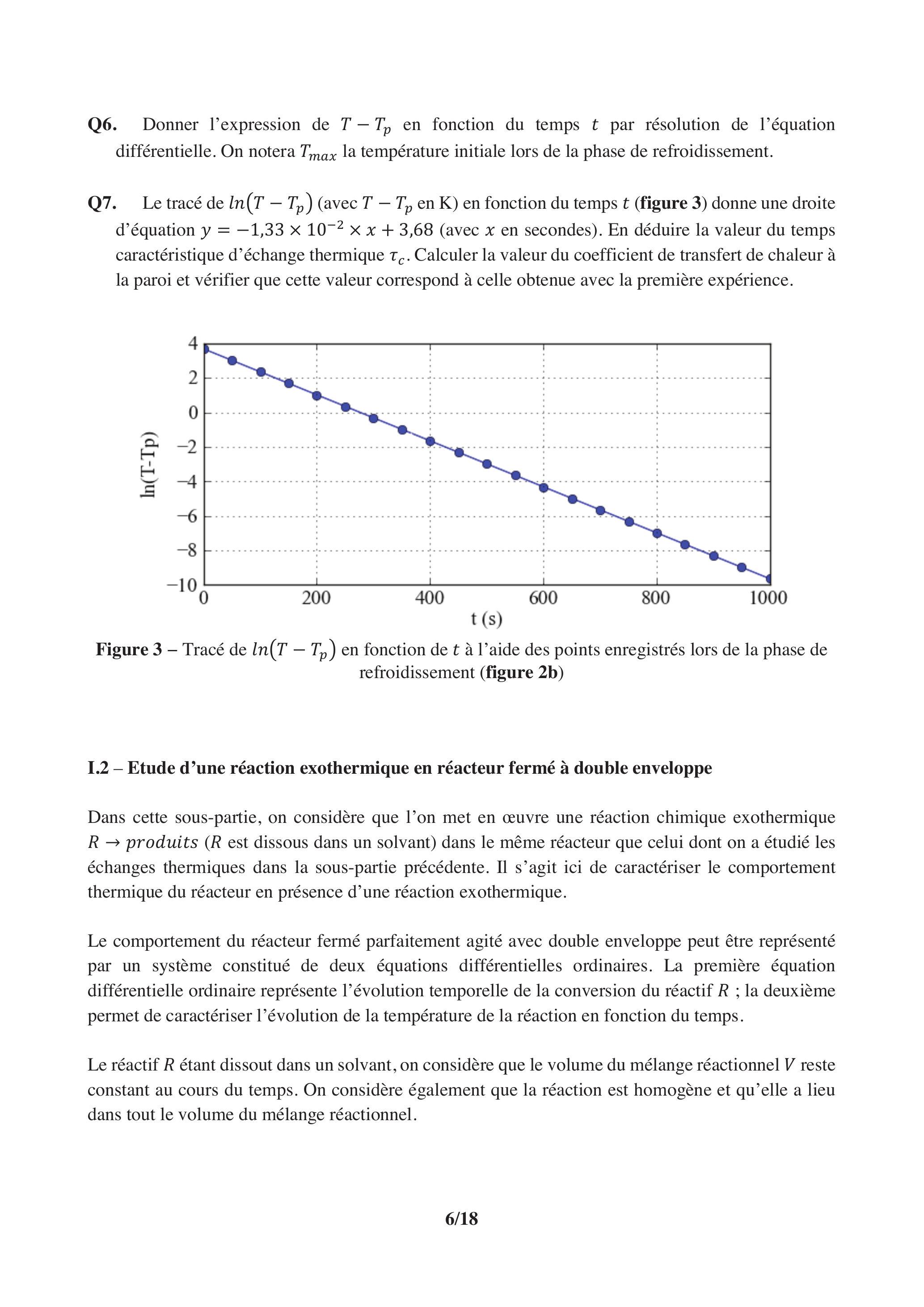 Dans cette sous-partie, on considère que l'on met en œuvre une réaction chimique exothermique produits ( est dissous dans un solvant) dans le même réacteur que celui dont on a étudié les échanges thermiques dans la sous-partie précédente. Il s'agit ici de caractériser le comportement thermique du réacteur en présence d'une réaction exothermique.