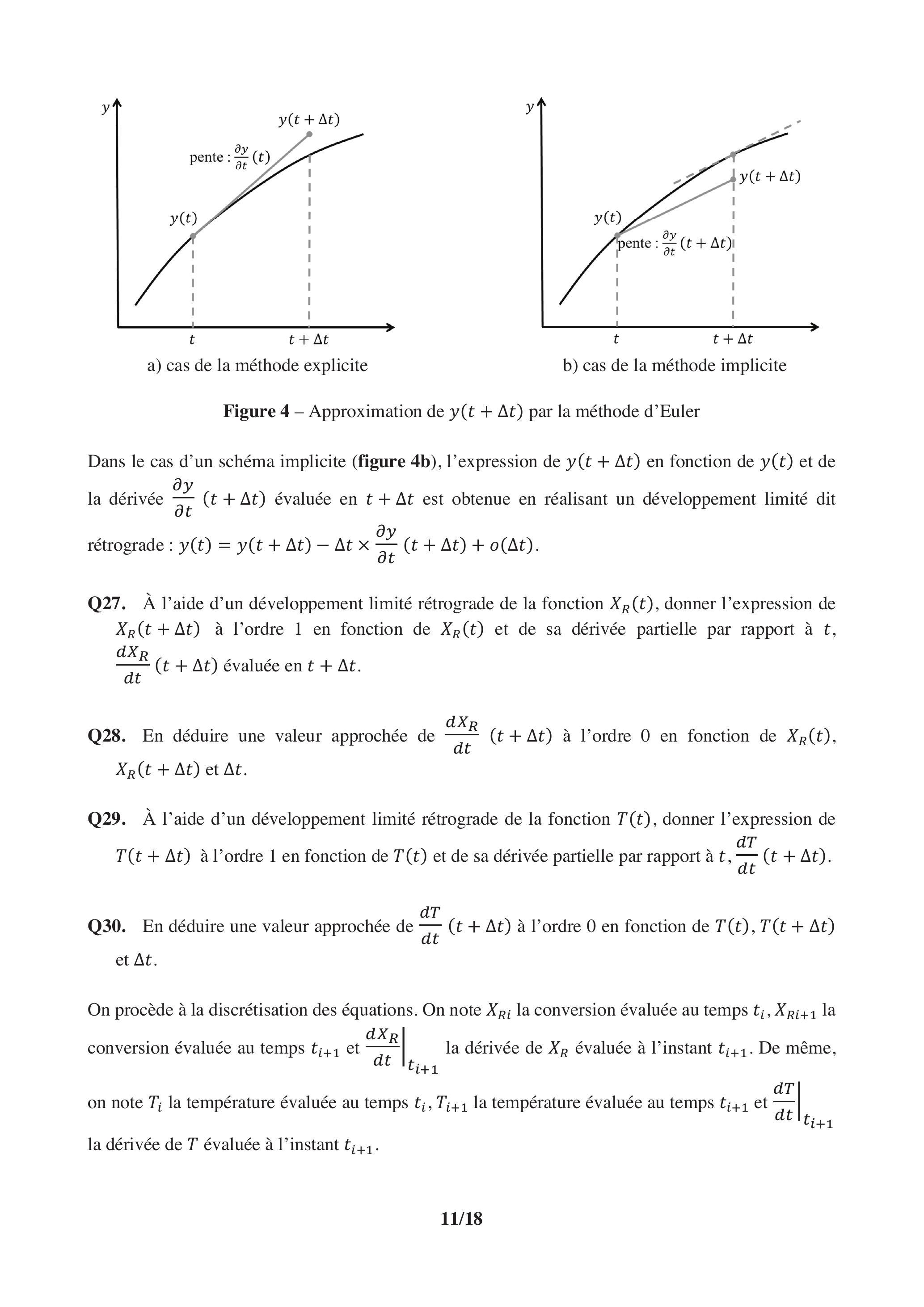 On constate que les expressions obtenues aux questions Q32 et Q34 constituent un système non linéaire dont les inconnues sont et . On propose d'utiliser la méthode de Newton-Raphson pour trouver les valeurs de et à chaque itération de la méthode d'Euler.