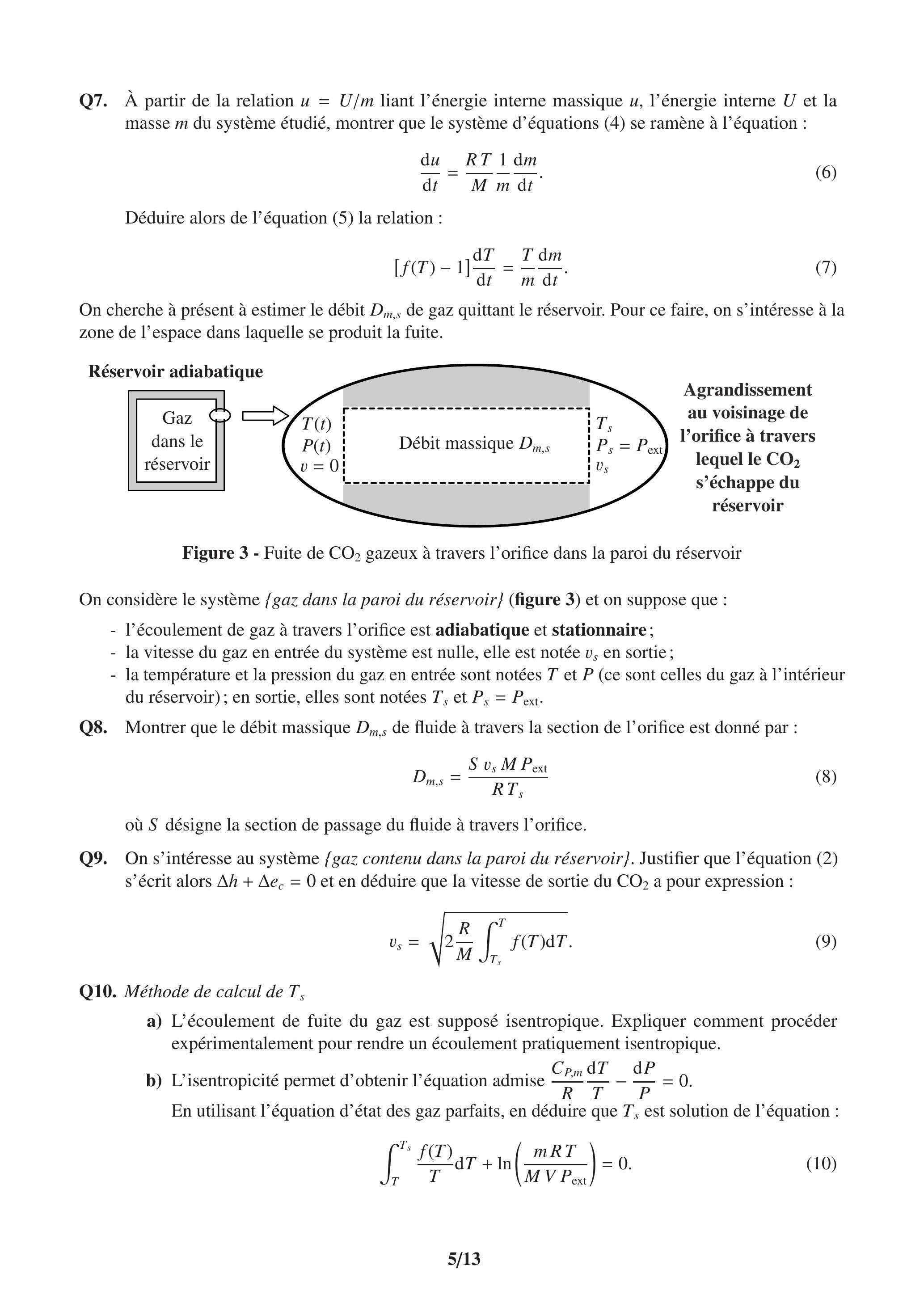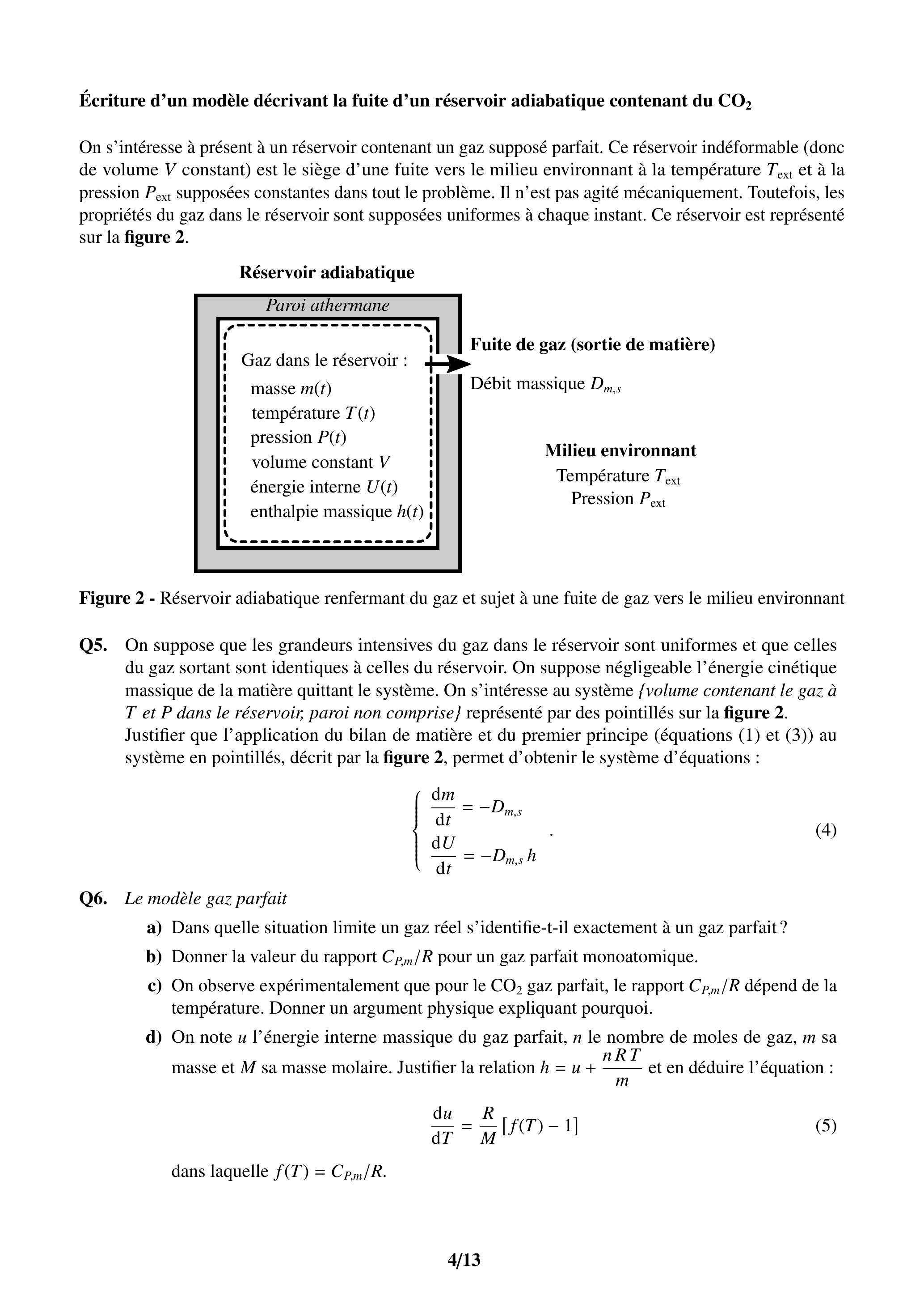 Ce sujet porte sur l'étude théorique et numérique d'une fuite de matière au sein d'une cuve contenant du dioxyde de carbone ( ) gazeux. Il est constitué de quatre parties indépendantes.