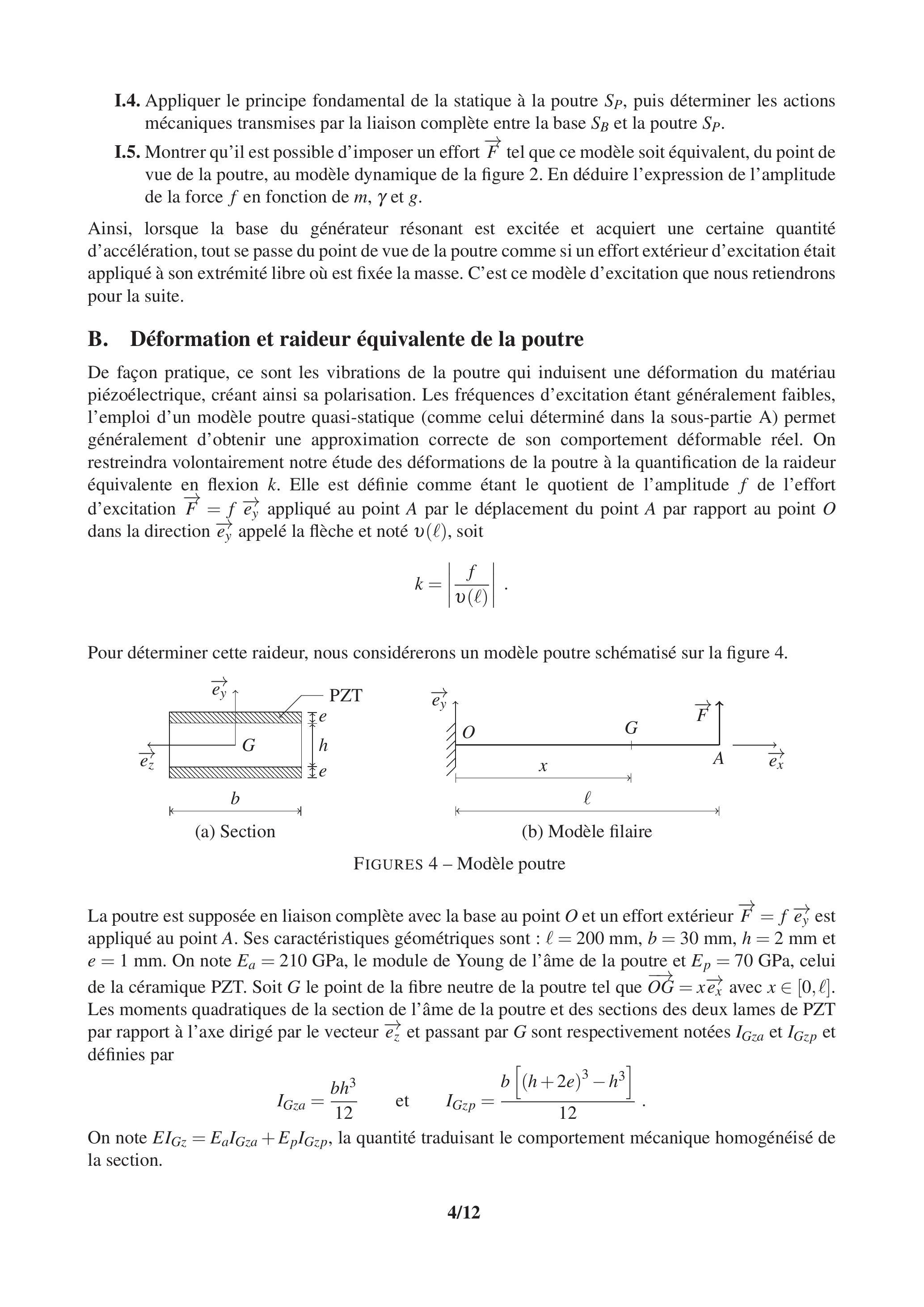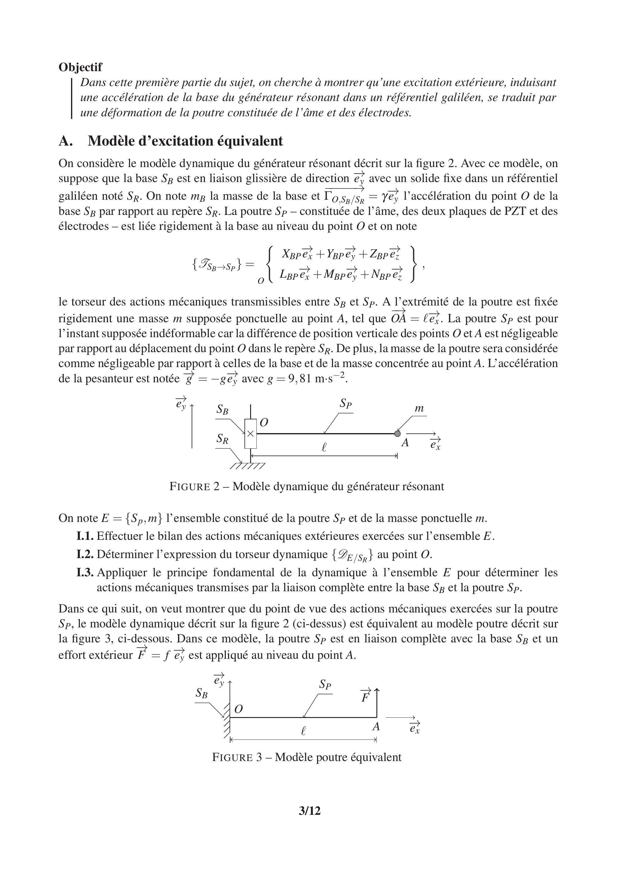 Dans cette première partie du sujet, on cherche à montrer qu'une excitation extérieure, induisant une accélération de la base du générateur résonant dans un référentiel galiléen, se traduit par une déformation de la poutre constituée de l'âme et des électrodes.