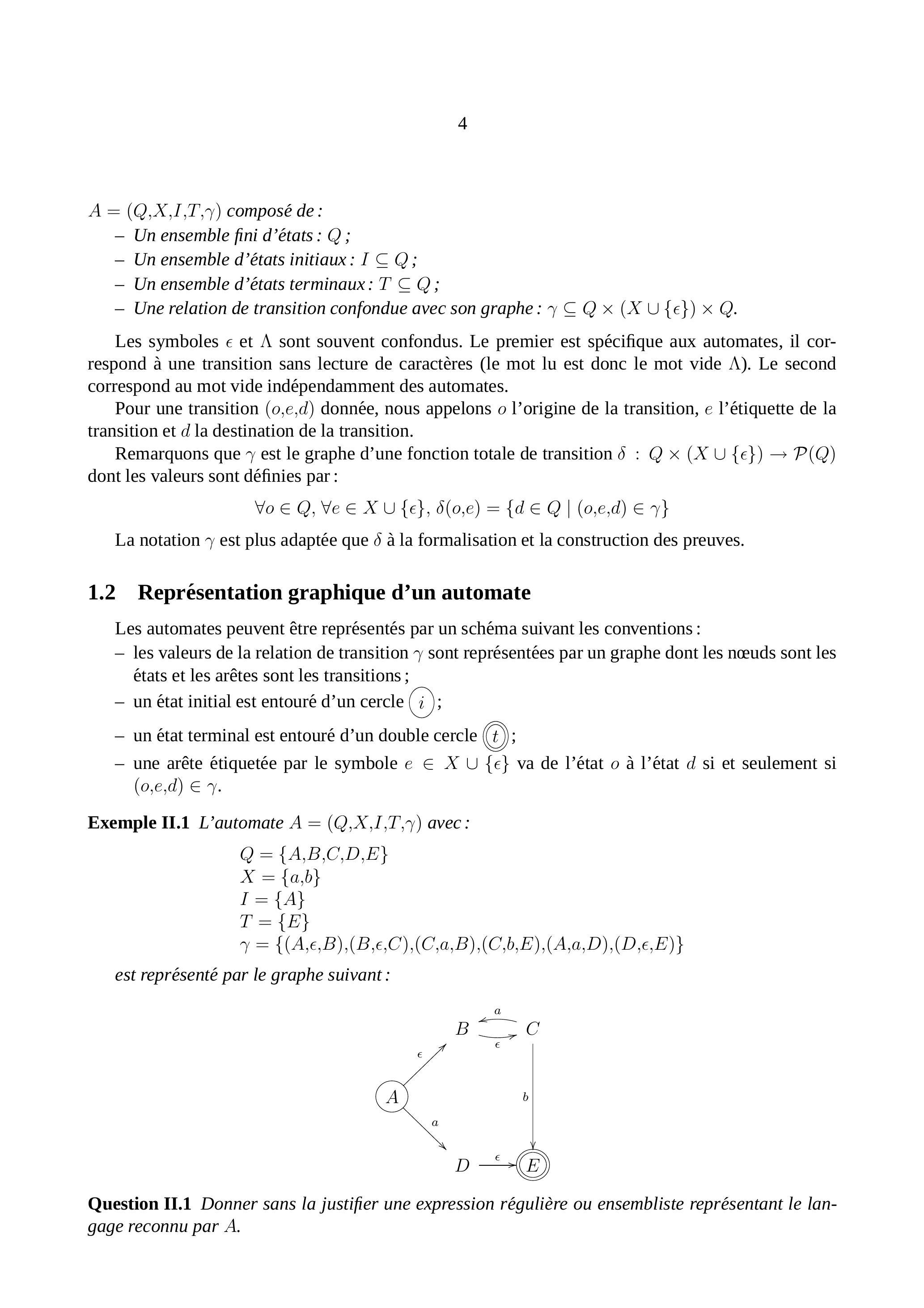 Question II. 1 Donner sans la justifier une expression régulière ou ensembliste représentant le langage reconnu par .
