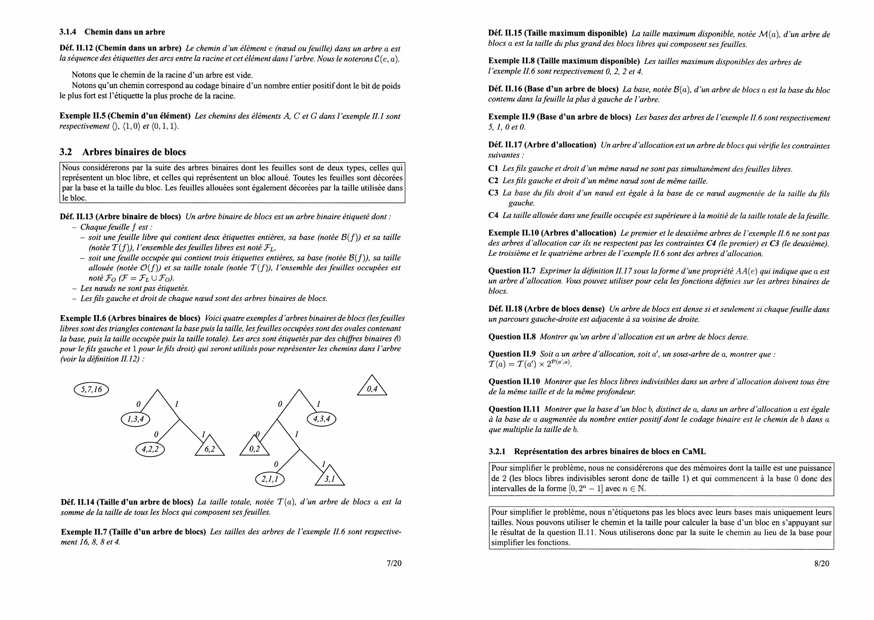 Déf. II. 17 (Arbre d'allocation) Un arbre d'allocation est un arbre de blocs qui vérifie les contraintes suivantes :