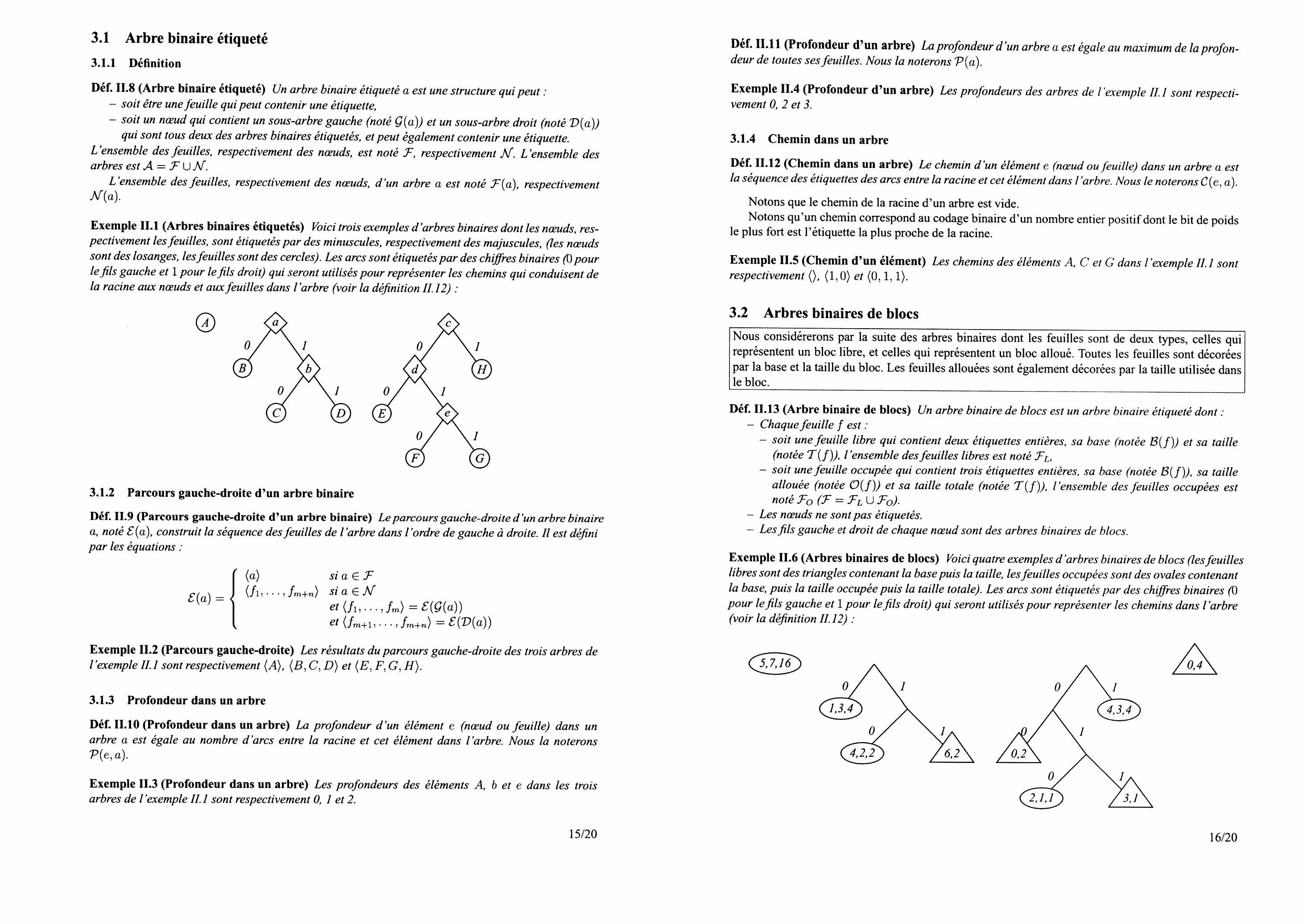Déf. II. 13 (Arbre binaire de blocs) Un arbre binaire de blocs est un arbre binaire étiqueté dont :