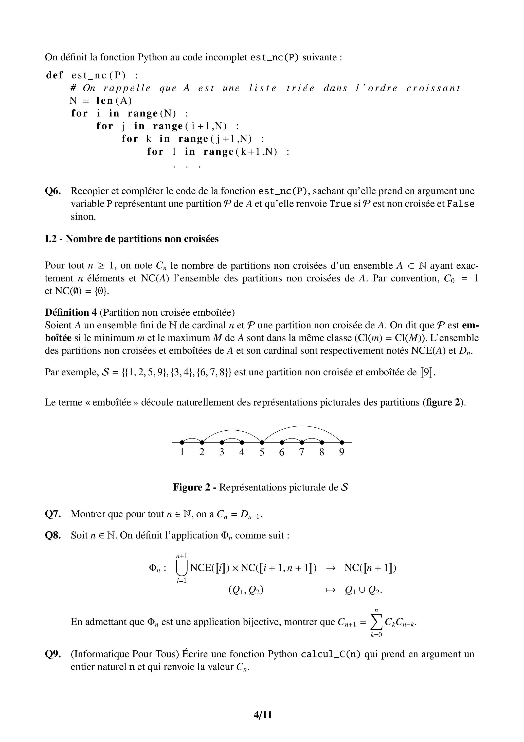 Q9. (Informatique Pour Tous) Écrire une fonction Python calcul_C(n) qui prend en argument un entier naturel n et qui renvoie la valeur .