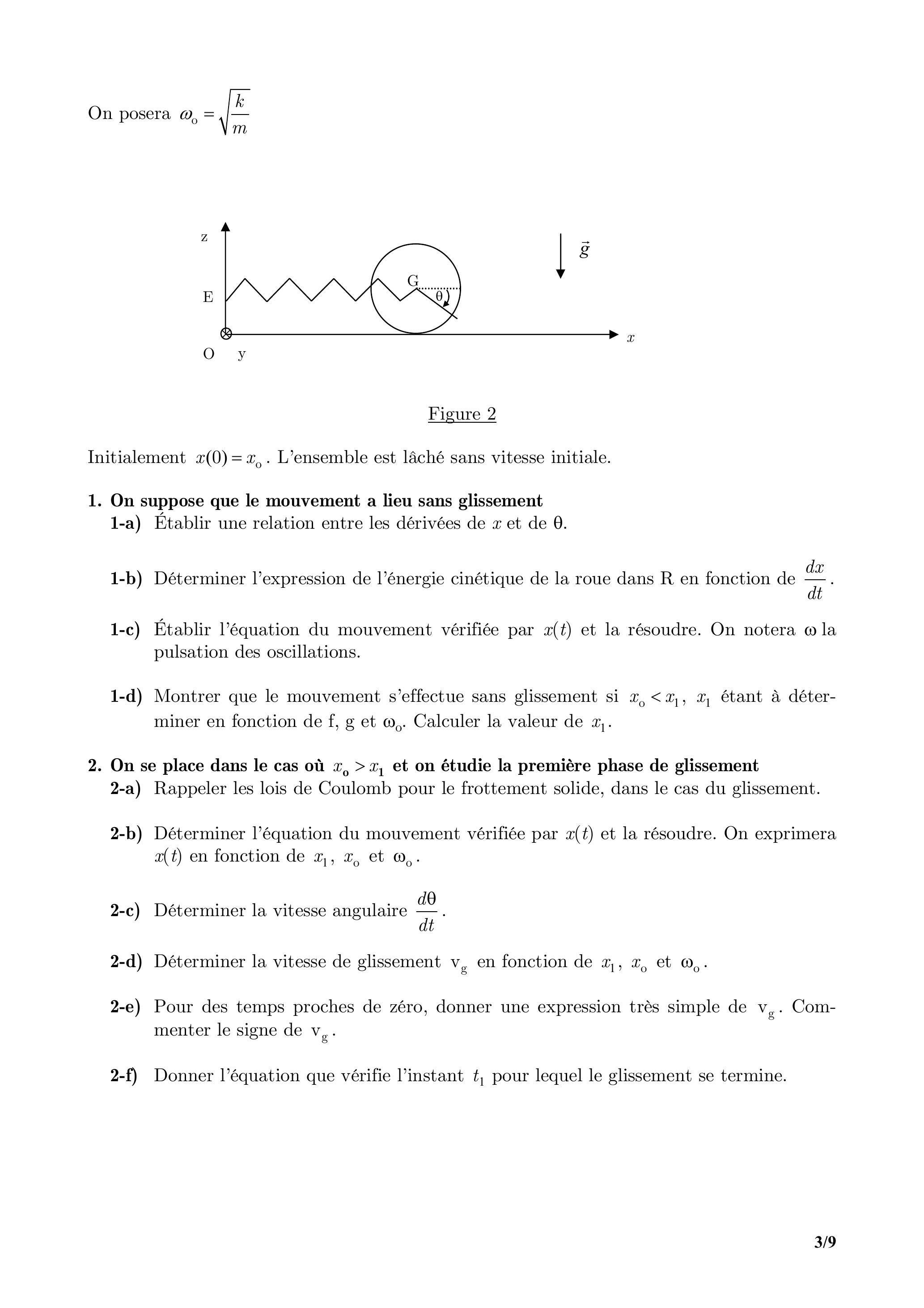 1-d) Montrer que le mouvement s'effectue sans glissement si , étant à déterminer en fonction de et . Calculer la valeur de .