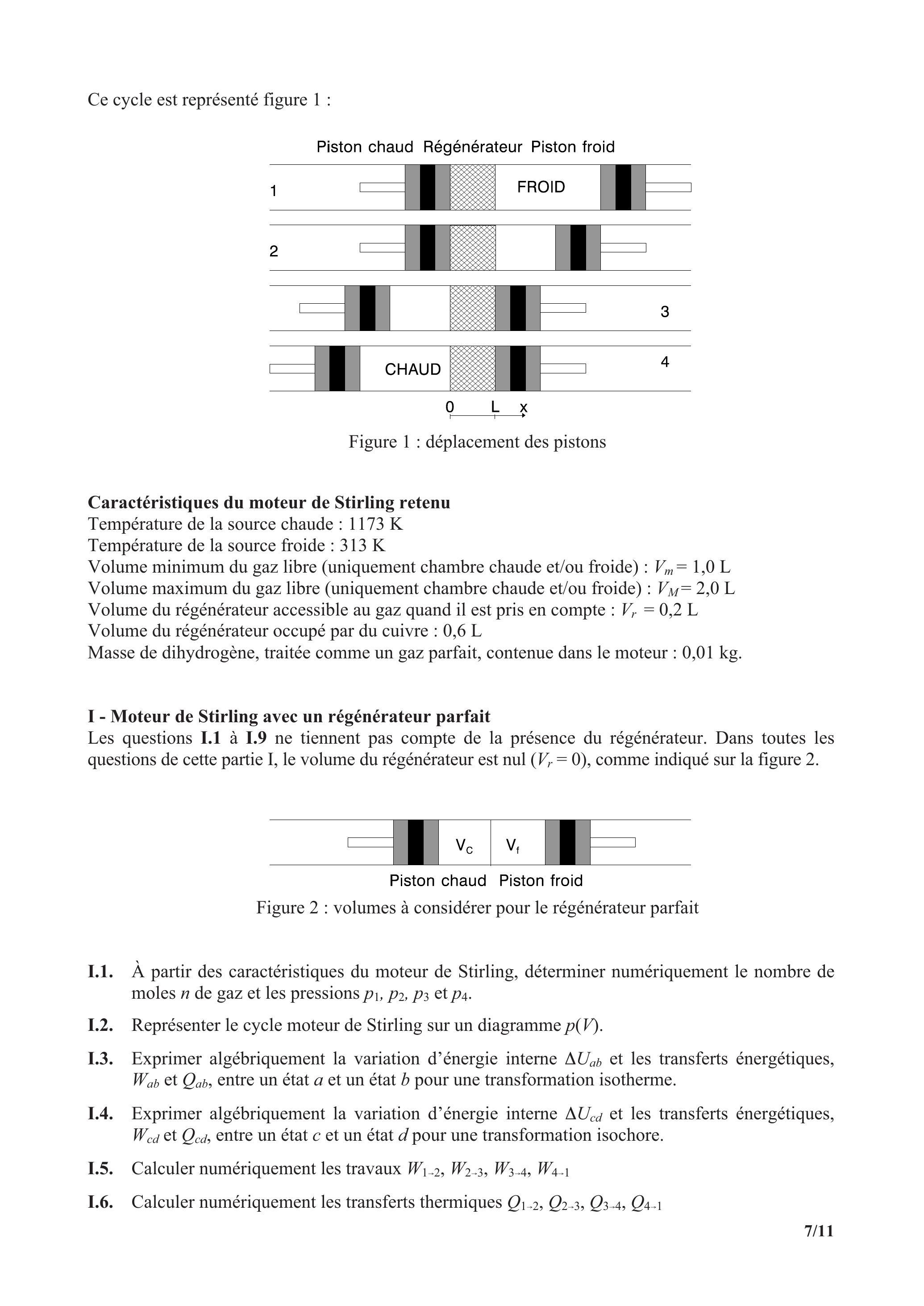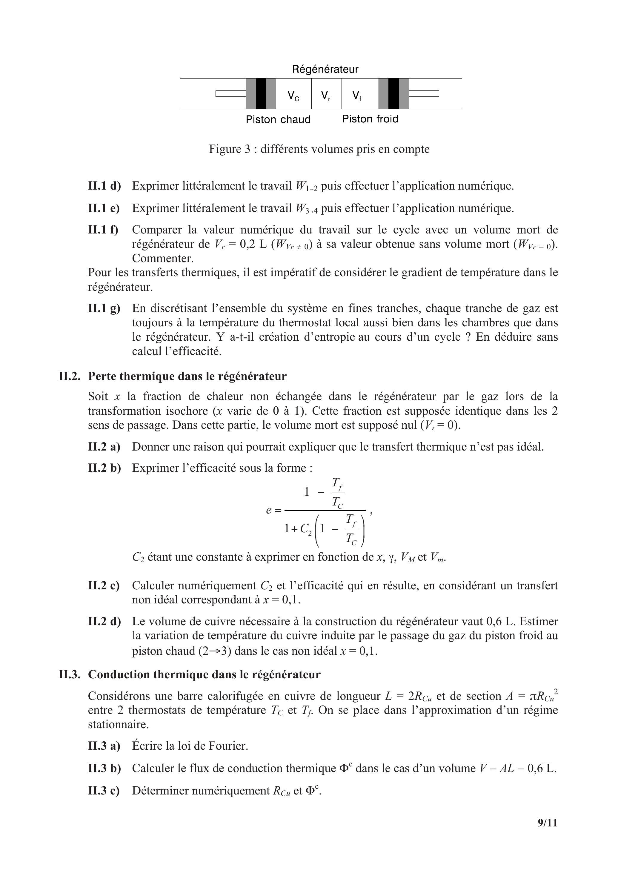 Les questions I. 1 à I. 9 ne tiennent pas compte de la présence du régénérateur. Dans toutes les questions de cette partie I, le volume du régénérateur est nul ( ), comme indiqué sur la figure 2.