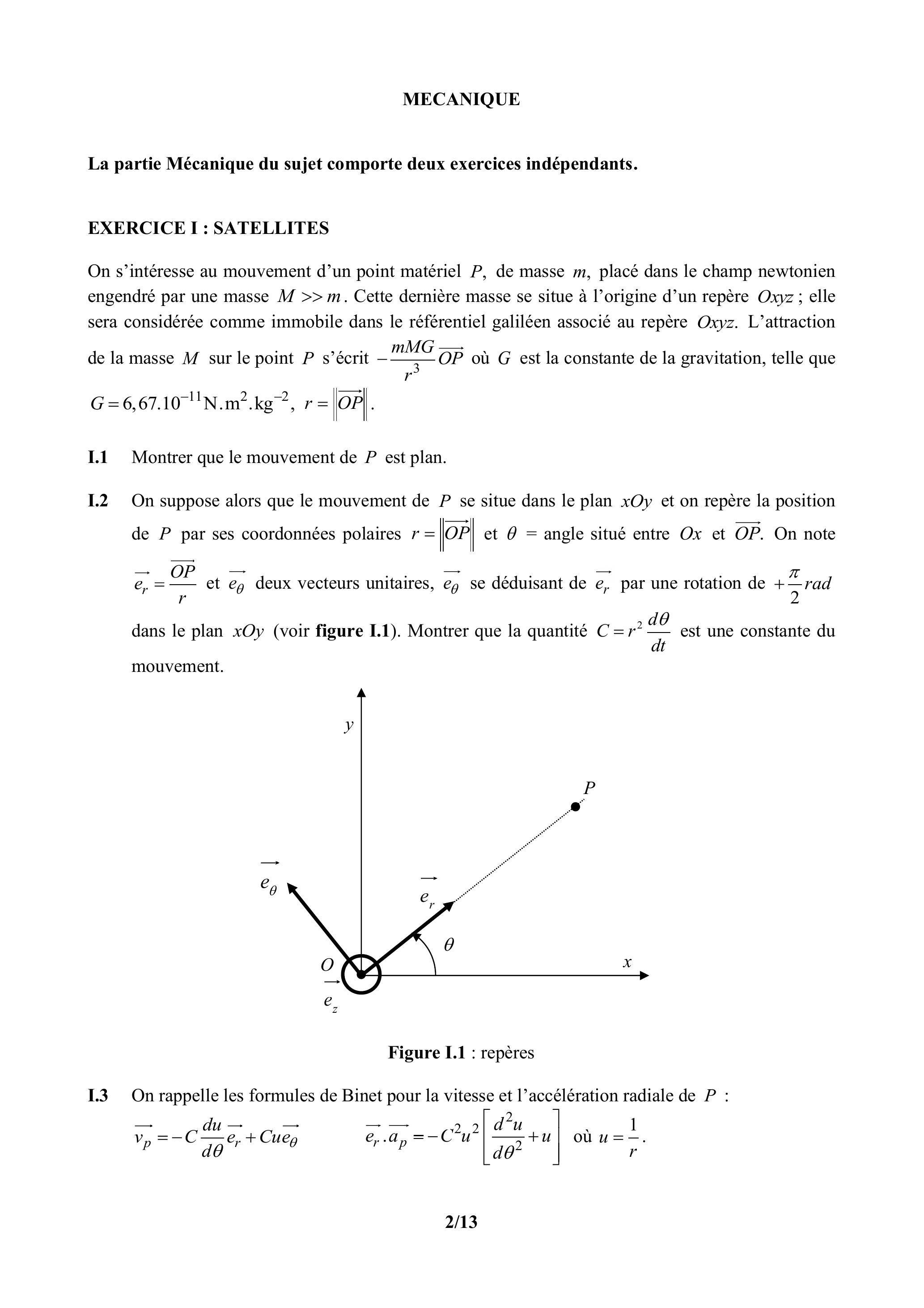 Les exercices I et II portent sur la mécanique (de la page 2 à la page 8).