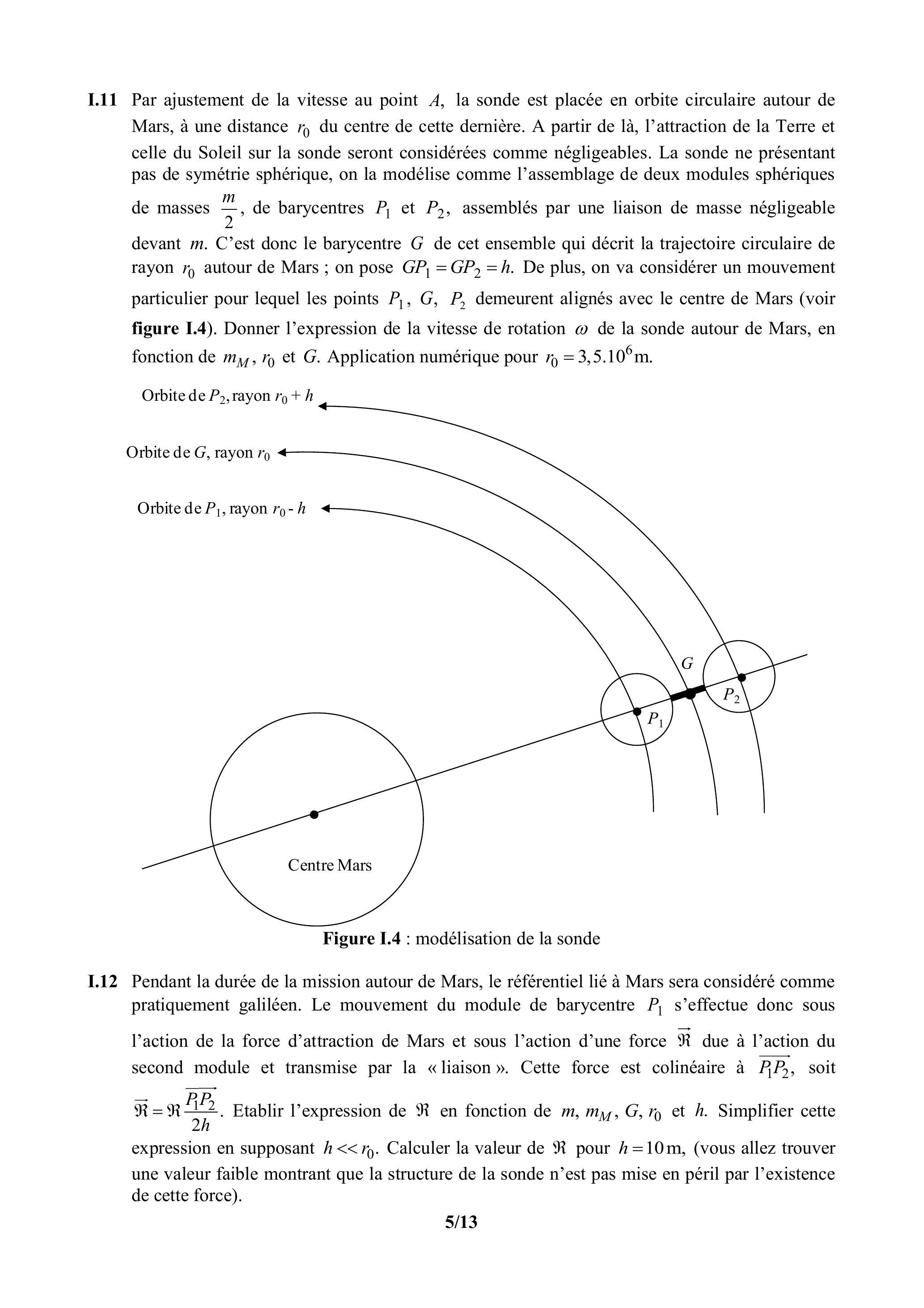 I. 8 Les résultats obtenus vont être appliqués au système solaire pour lequel on précise les masses du Soleil, de la Terre et de Mars, respectivement , .