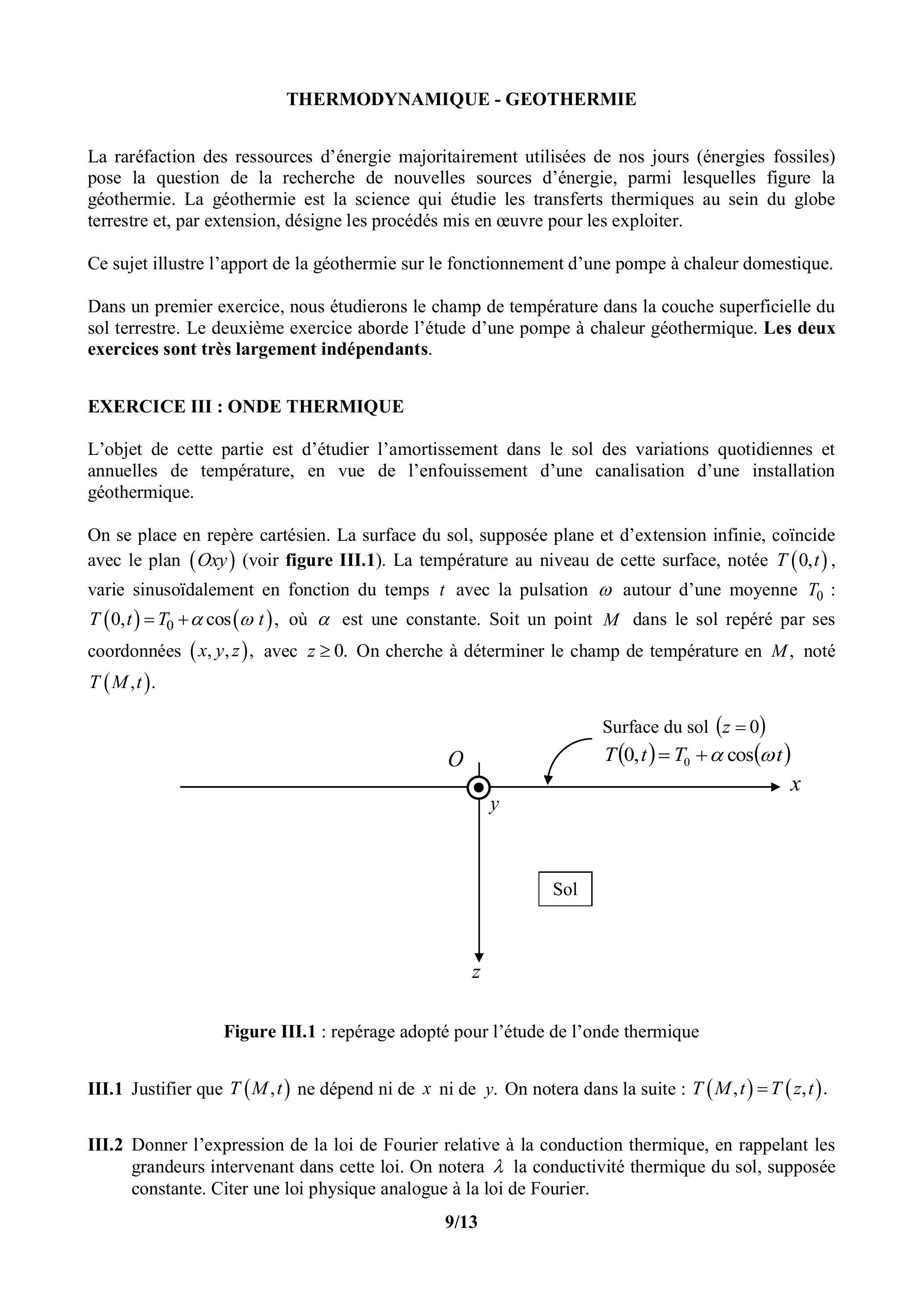Les exercices III et IV portent sur la thermodynamique (de la page 9 à la page 13).