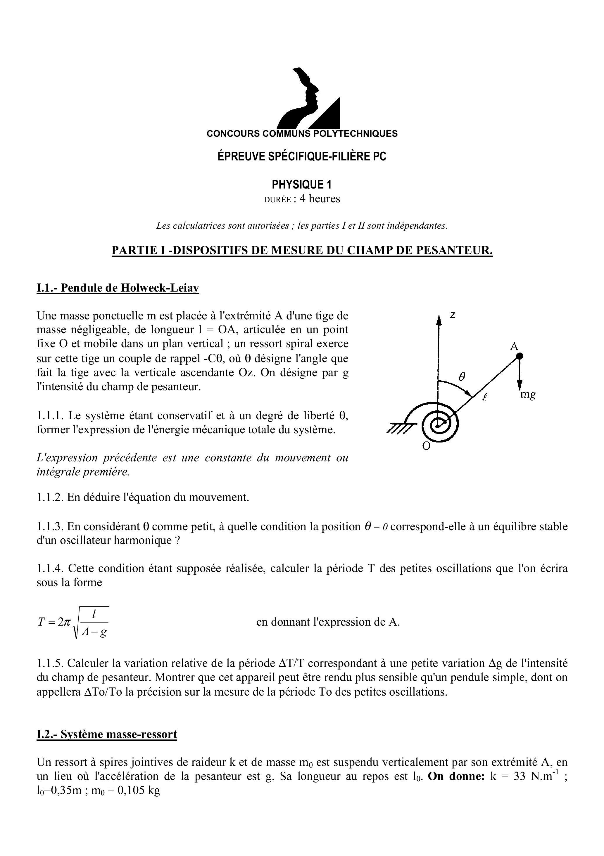 CCINP Physique 1 PC 2000 - Version Web LaTeX | WikiPrépa | WikiPrépa