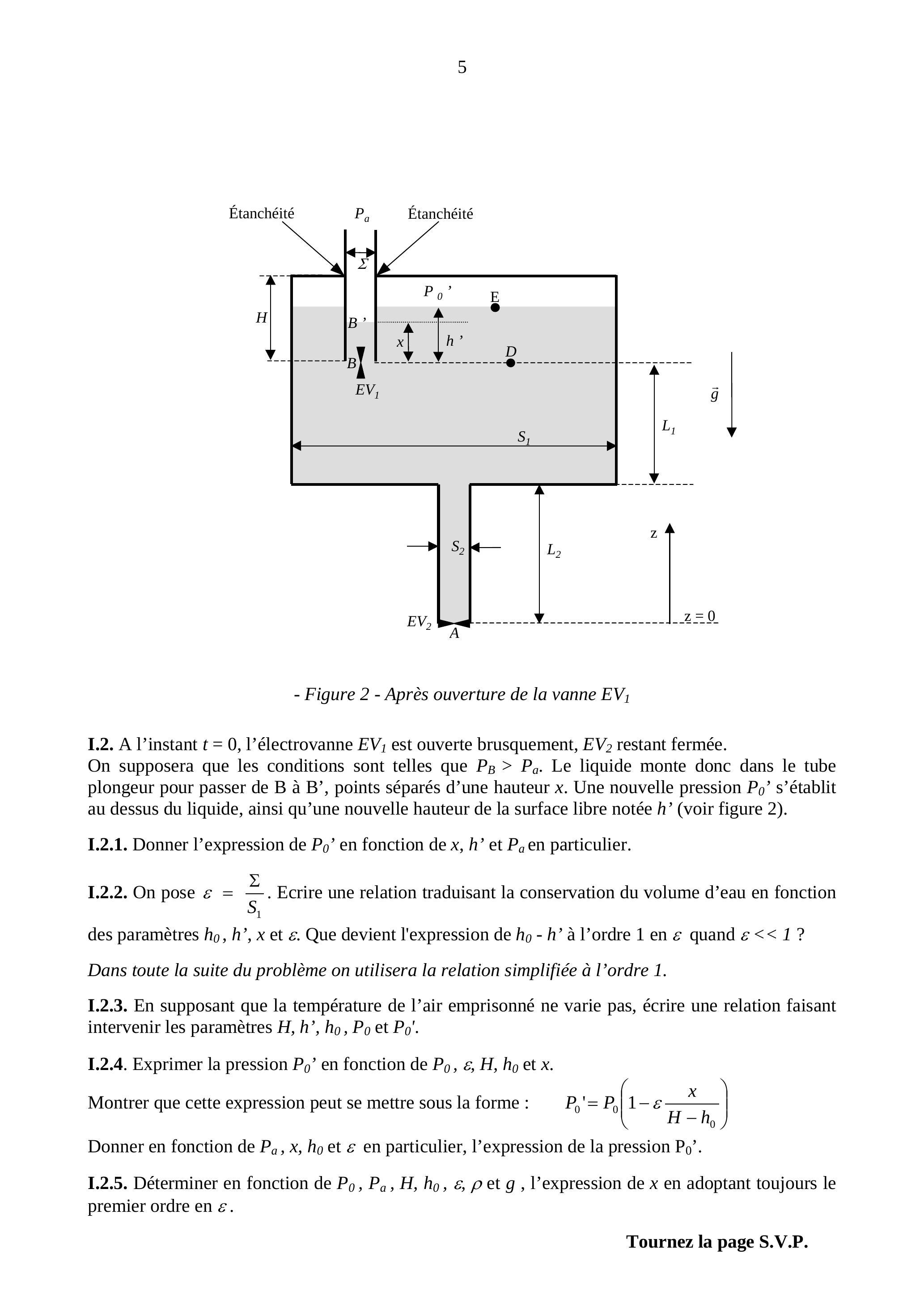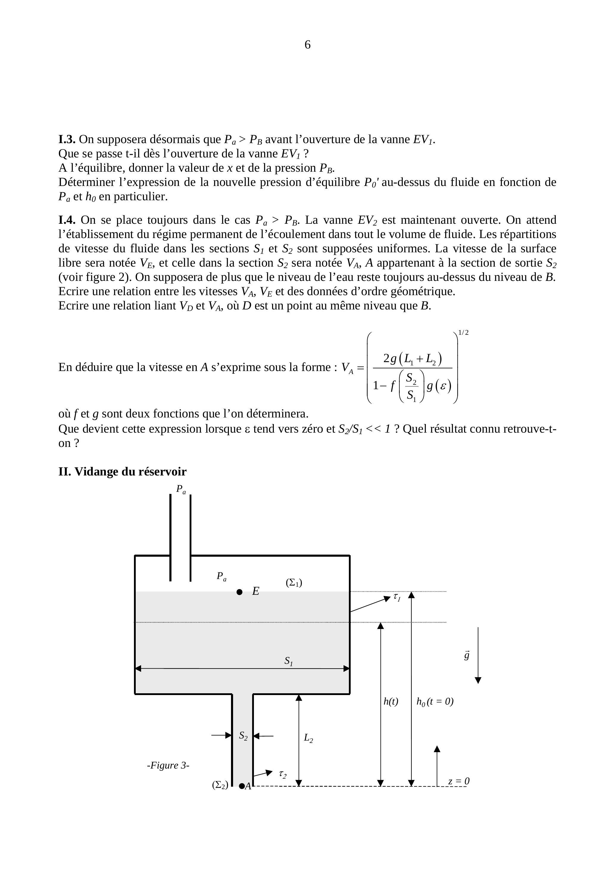 I.3. On supposera désormais que avant l'ouverture de la vanne .