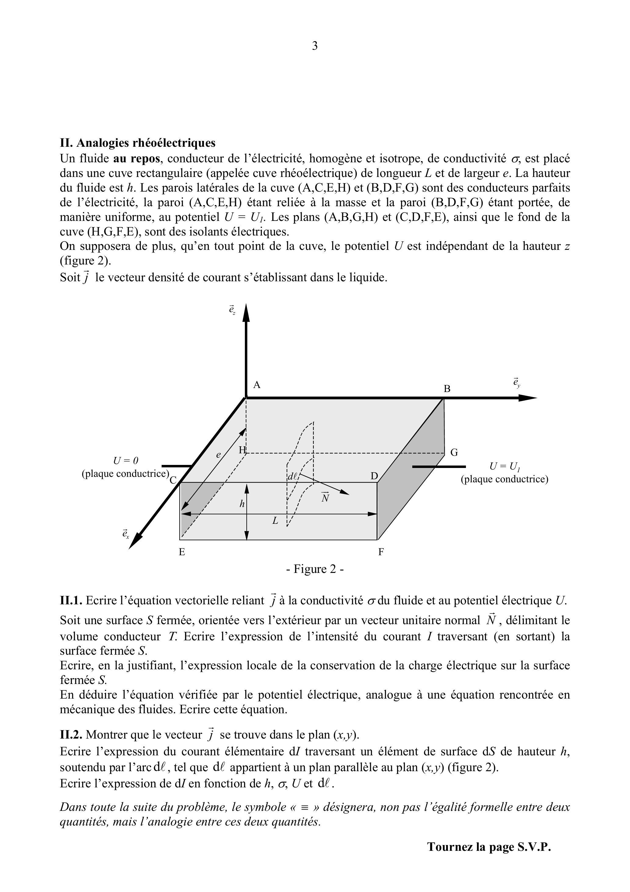 II.3. Pour que l'on puisse établir une analogie entre le potentiel de vitesse de la mécanique des fluides et le potentiel électrique , soit , montrer que la fonction de courant et l'intensité du courant doivent être reliées par :