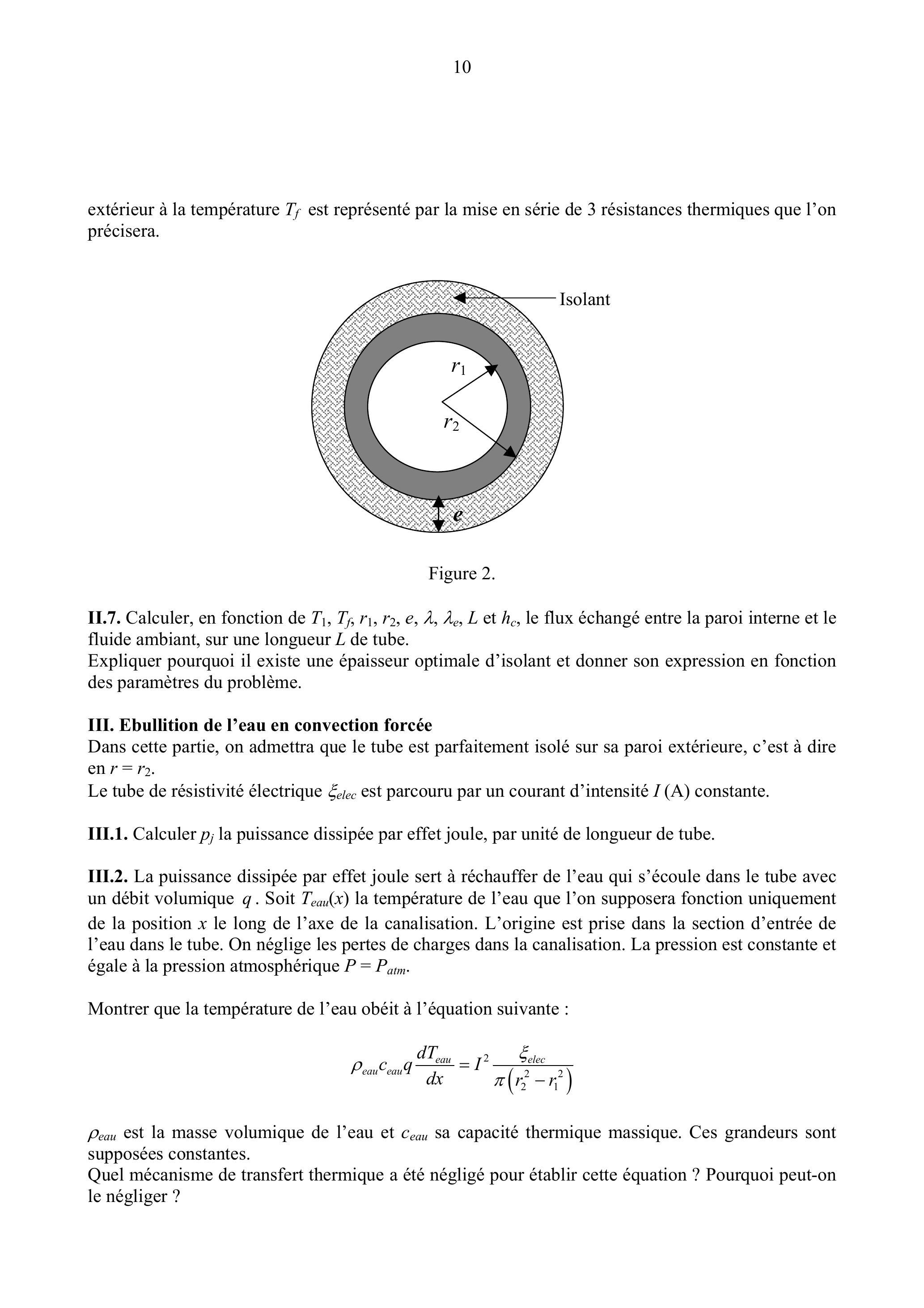 II.7. Calculer, en fonction de et , le flux échangé entre la paroi interne et le fluide ambiant, sur une longueur de tube.