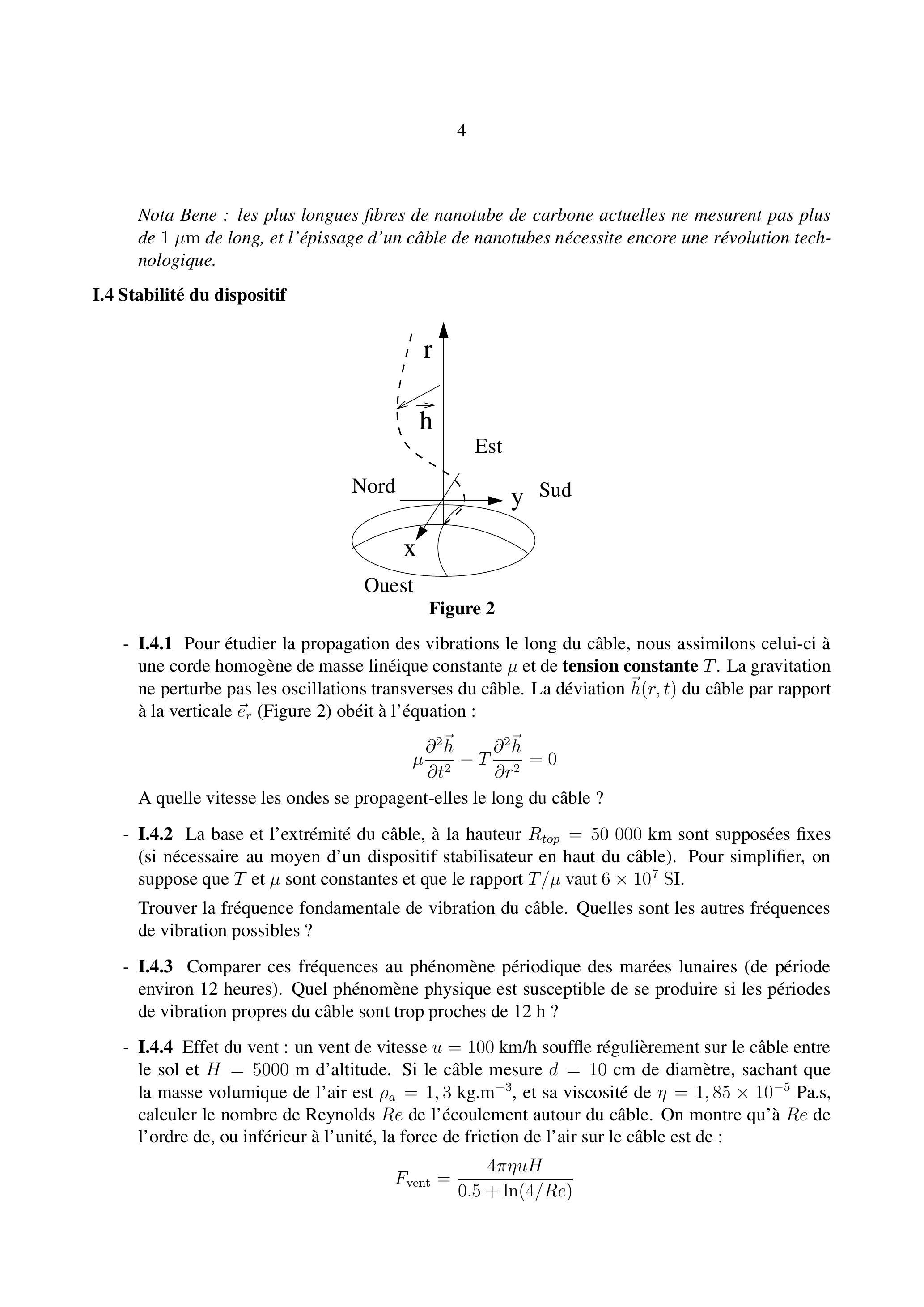 , de diamètre et masse volumique du câble qu'à la question précédente. - I.4.6 L'énergie mécanique (cinétique et potentielle) du câble vaut, par unité de longueur,