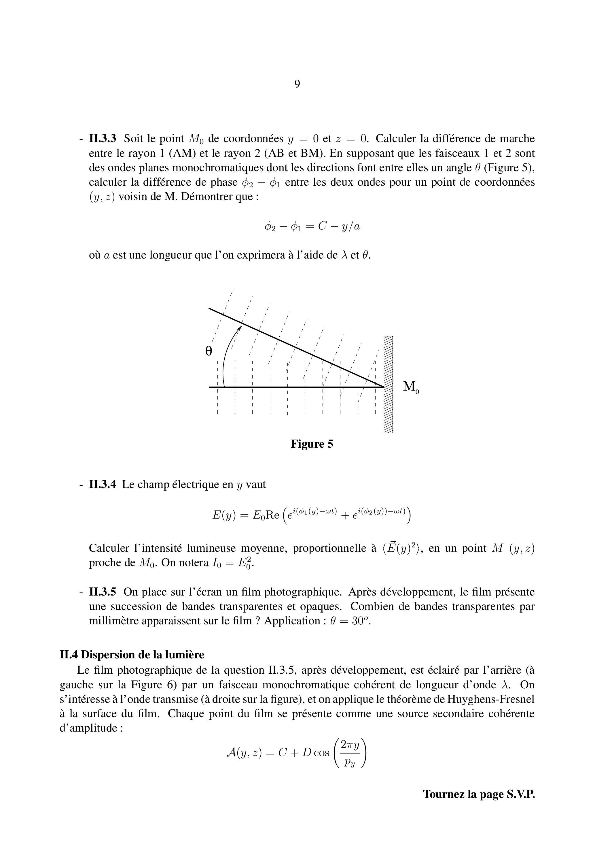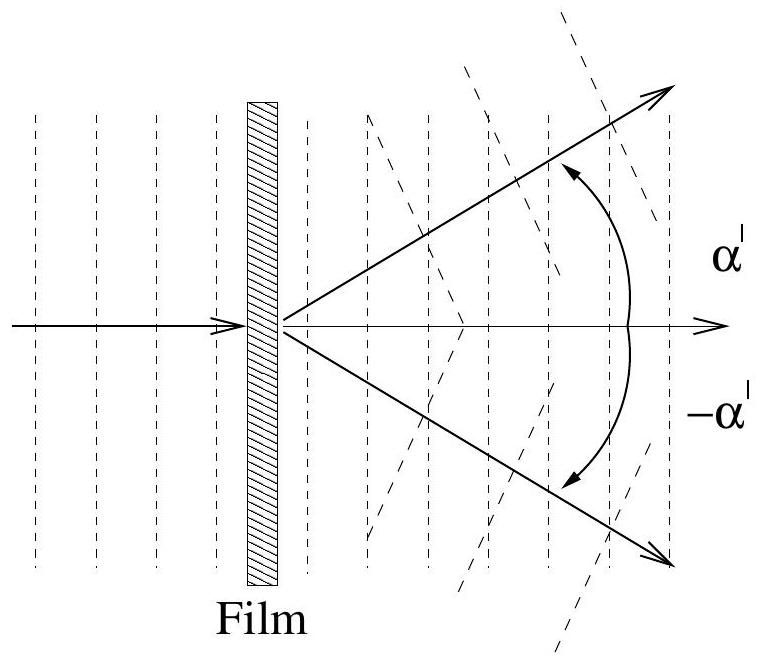 et avec l'horizontale. Indication : on pourra, soit faire un calcul, soit considérer l'amplitude du champ électrique que produiraient ces trois ondes dans le plan ( ) en l'absence du film. - II.4.2 On remplace le faisceau de longueur d'onde