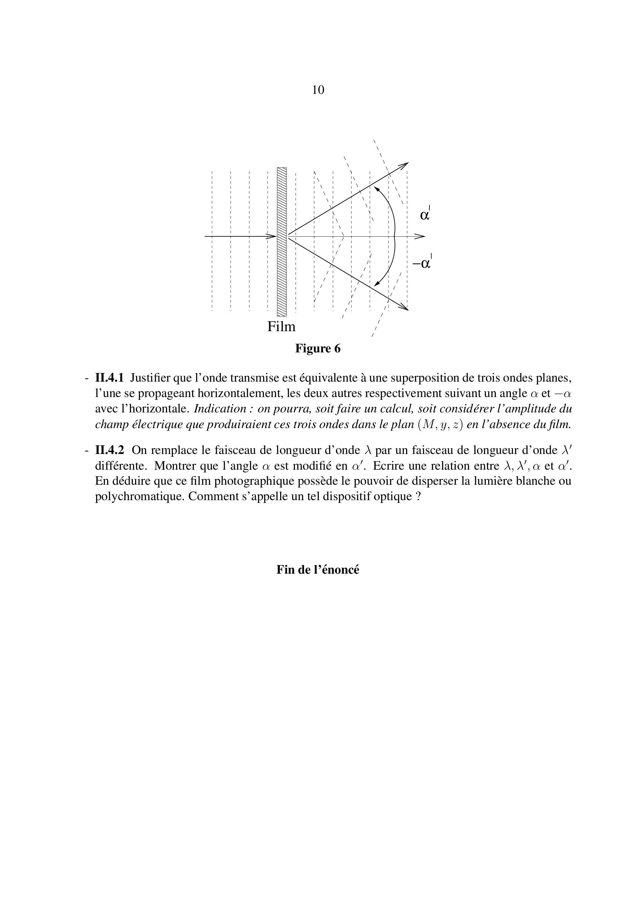 Le film photographique de la question II.3.5, après développement, est éclairé par l'arrière (à gauche sur la Figure 6) par un faisceau monochromatique cohérent de longueur d'onde