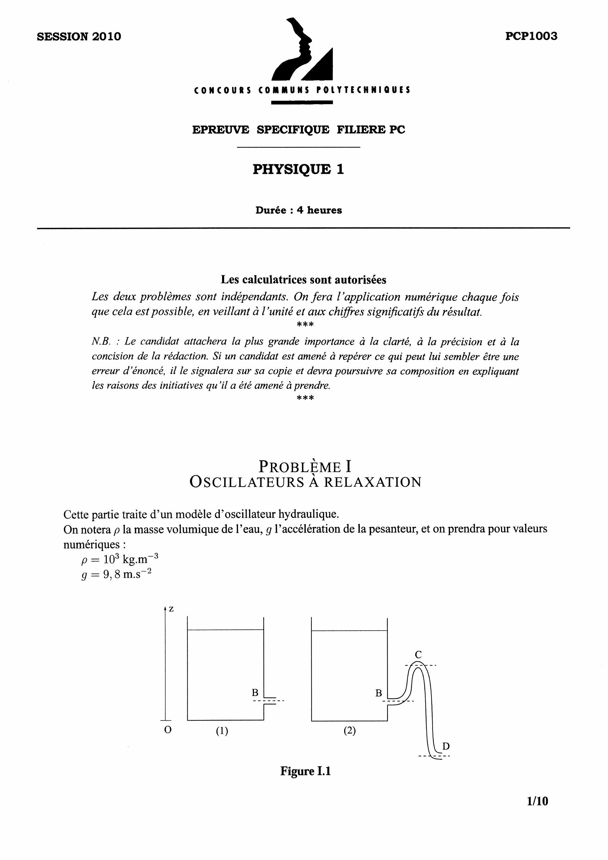 CCINP Physique 1 PC 2010 - Version Web LaTeX | WikiPrépa | WikiPrépa