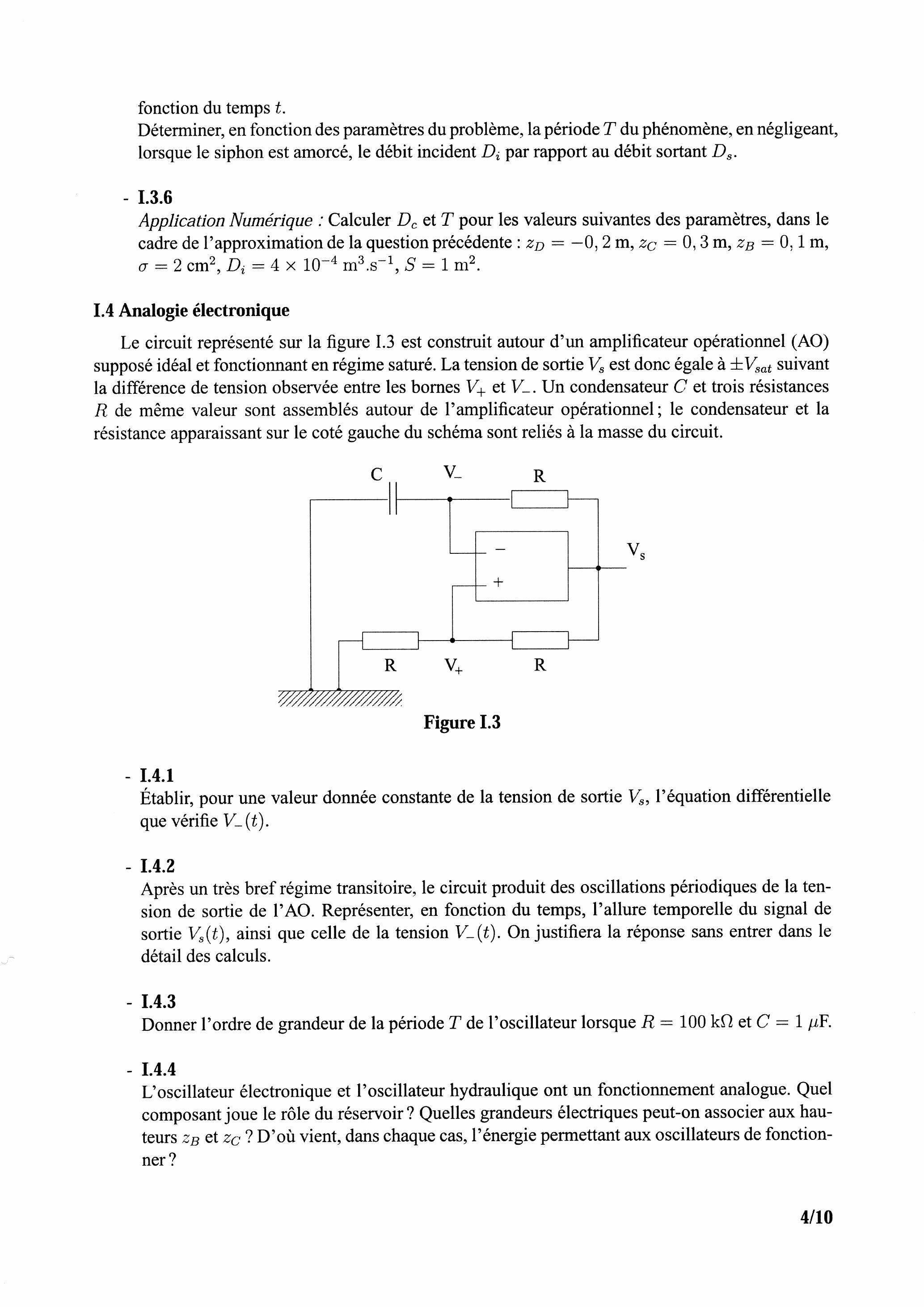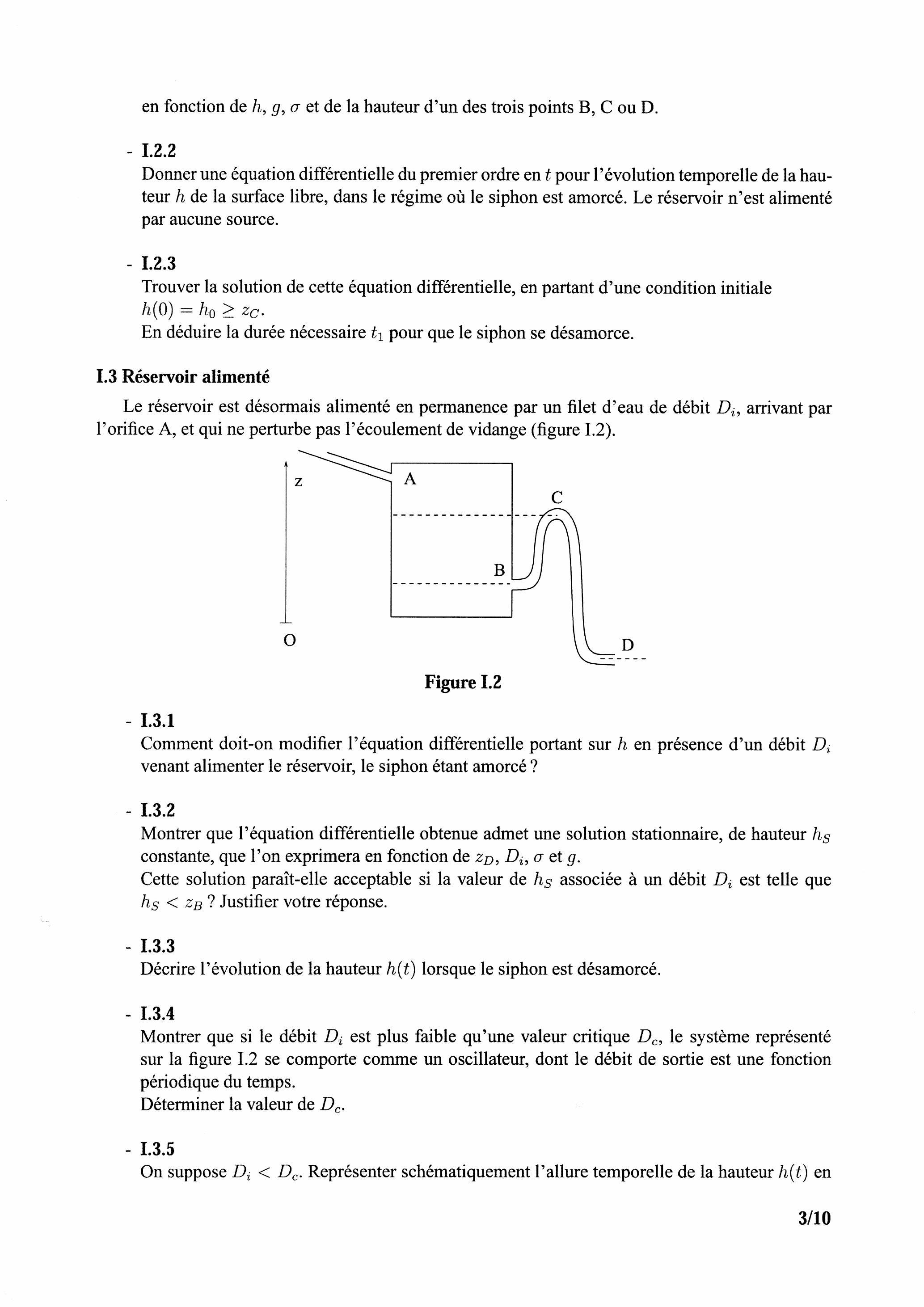 Déterminer, en fonction des paramètres du problème, la période du phénomène, en négligeant, lorsque le siphon est amorcé, le débit incident par rapport au débit sortant .
