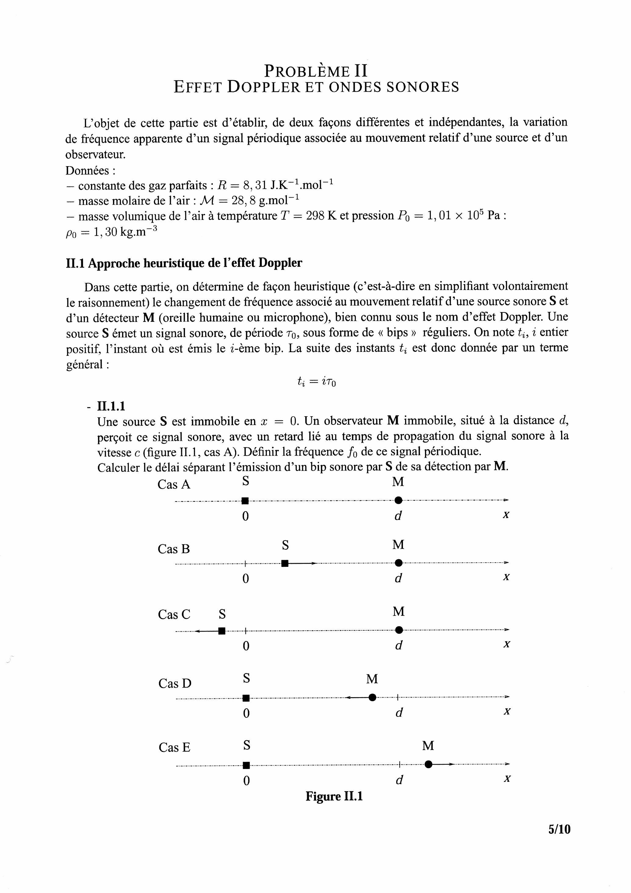 La source , initialement en à l'instant , se déplace à vitesse constante en direction opposée à celle de l'observateur , immobile et situé en (figure II.1, cas ). La source émet le même signal sonore périodique.