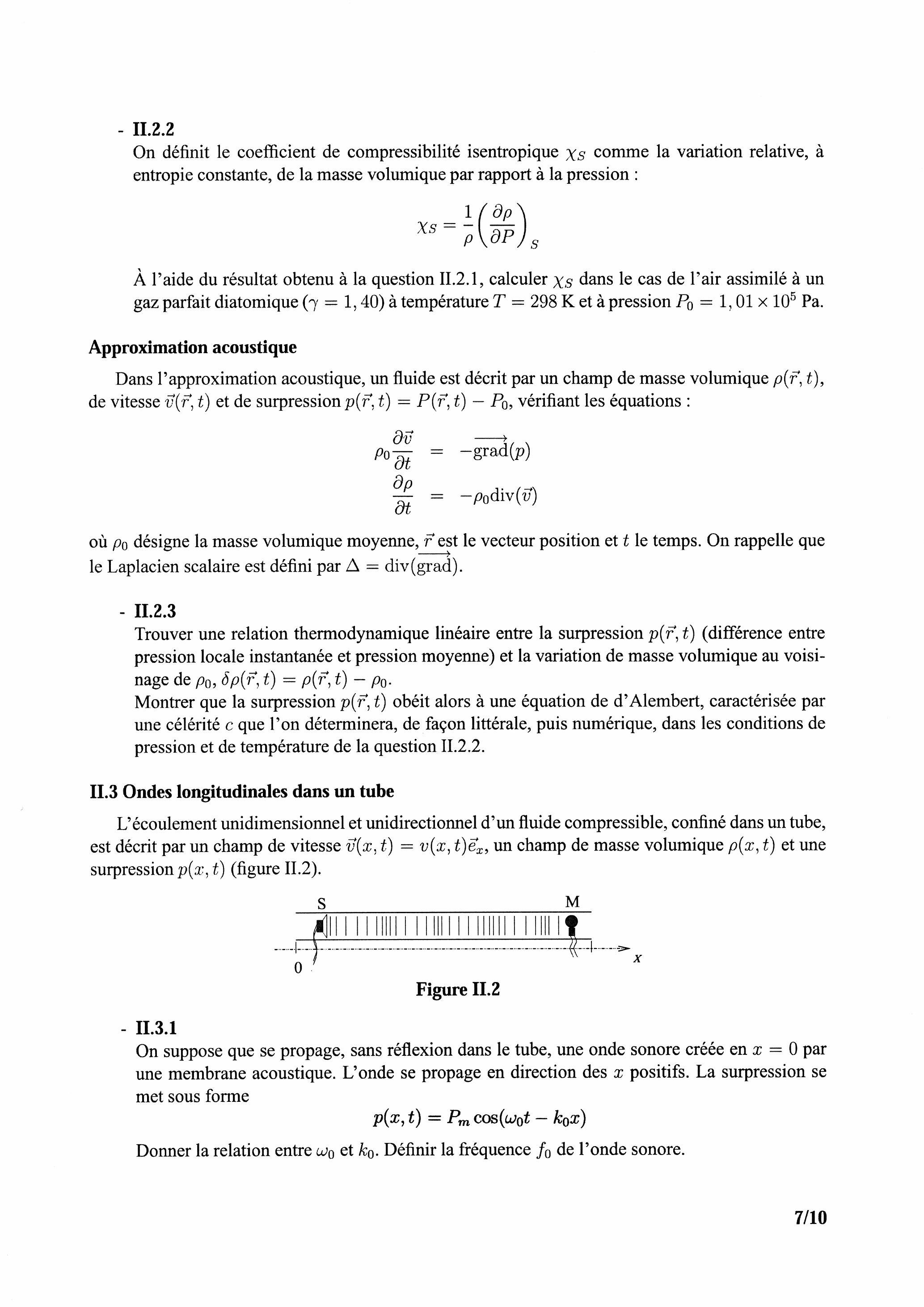 Montrer que la surpression obéit alors à une équation de d'Alembert, caractérisée par une célérité que l'on déterminera, de façon littérale, puis numérique, dans les conditions de pression et de température de la question II.2.2.
