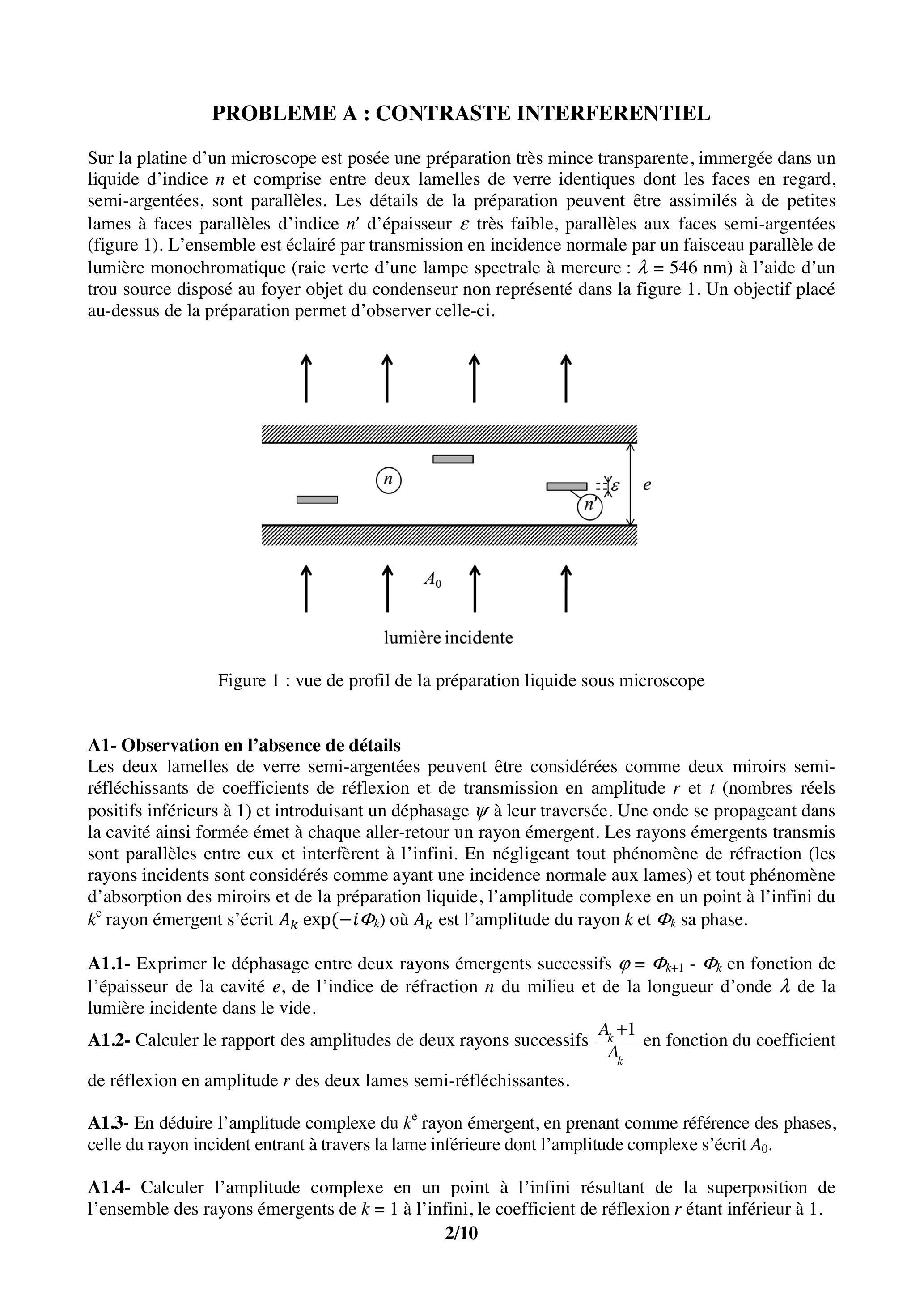 PROBLEME A : CONTRASTE INTERFERENTIEL