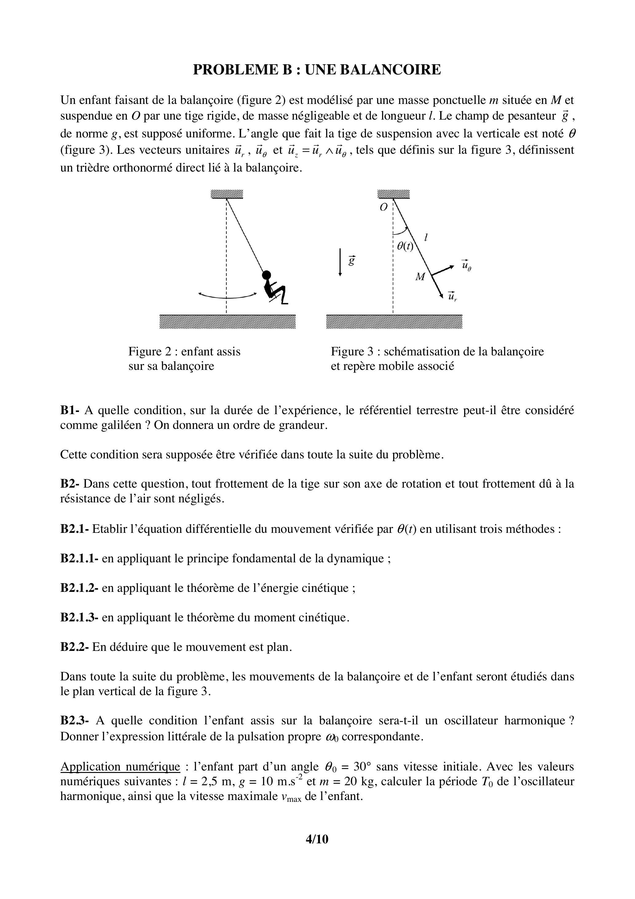Un enfant faisant de la balançoire (figure 2) est modélisé par une masse ponctuelle