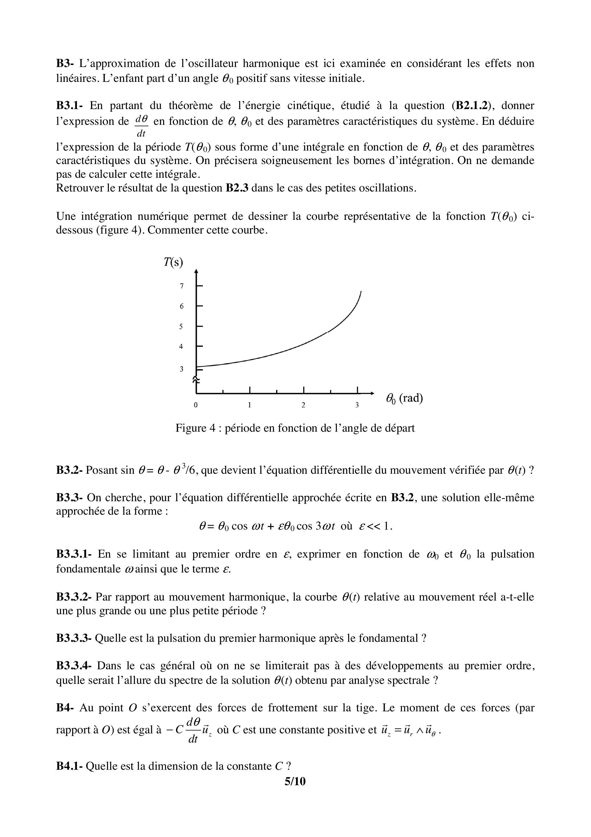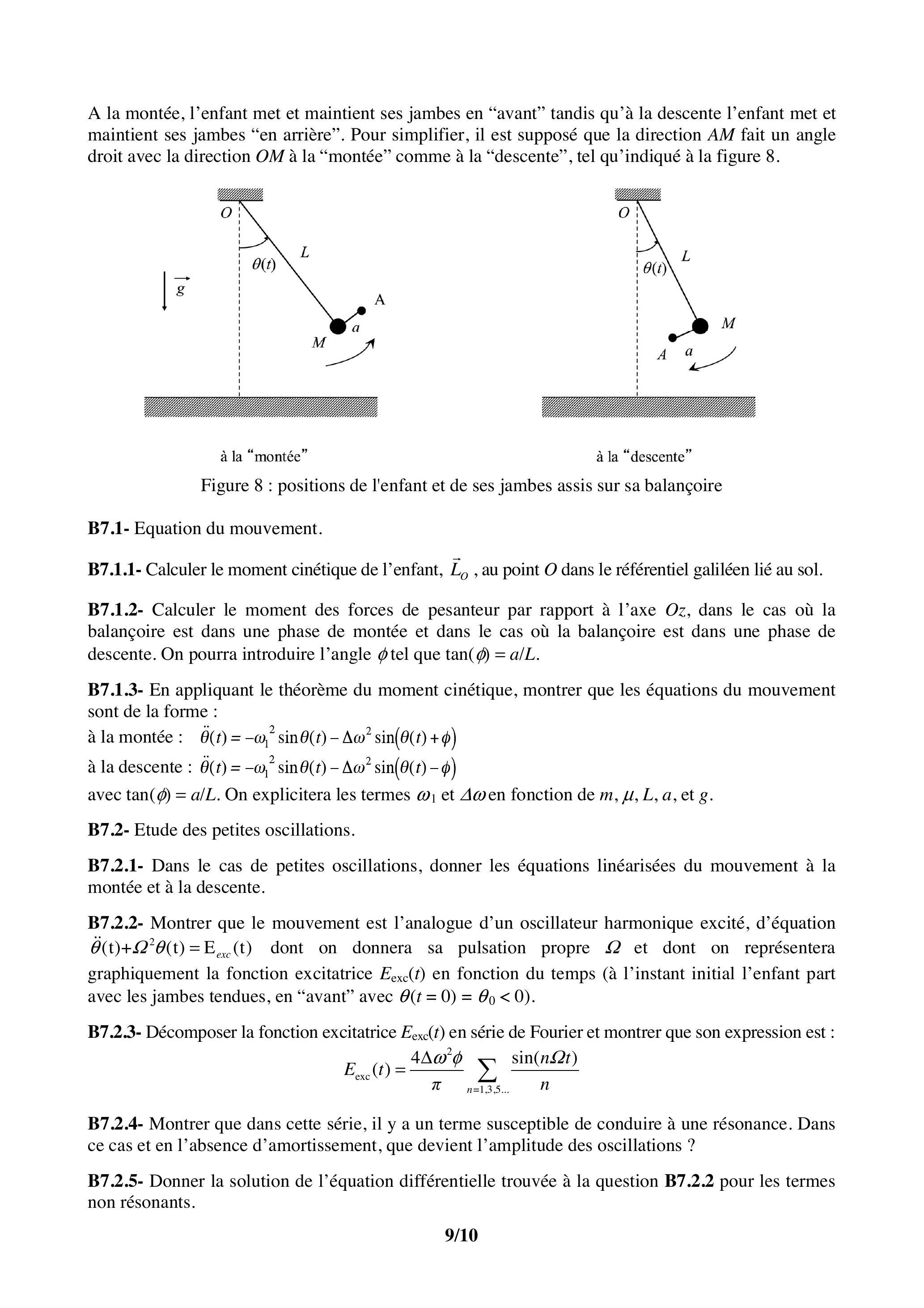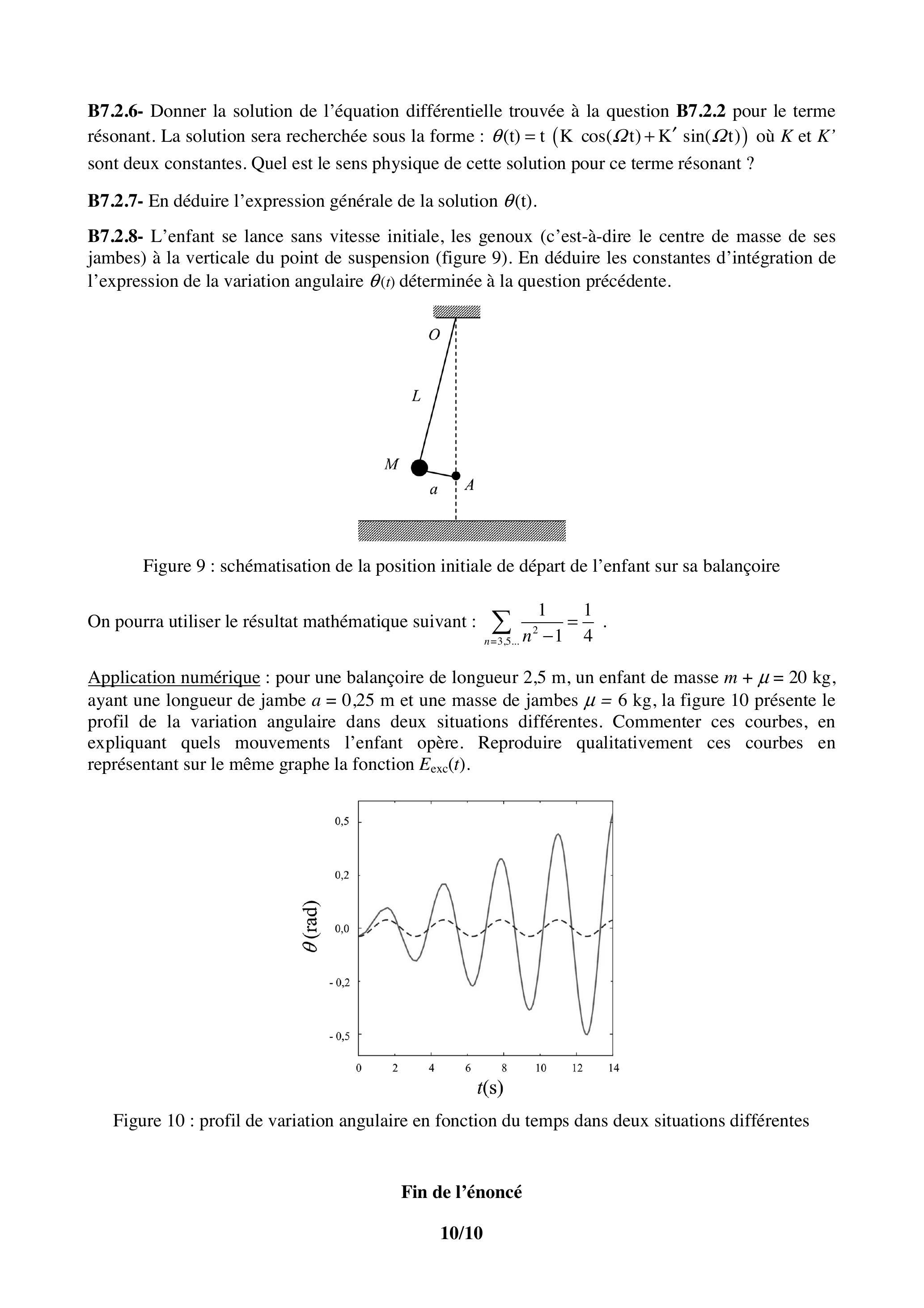 l'amplitude du mouvement. En déduire le travail fourni par l'enfant pousseur après 20 oscillations de l'enfant se balançant (les valeurs numériques des différents paramètres sont toujours ceux donnés à la question B2).
