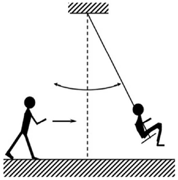 On schématise la balançoire et l'enfant comme un pendule de masse fictive (constante)