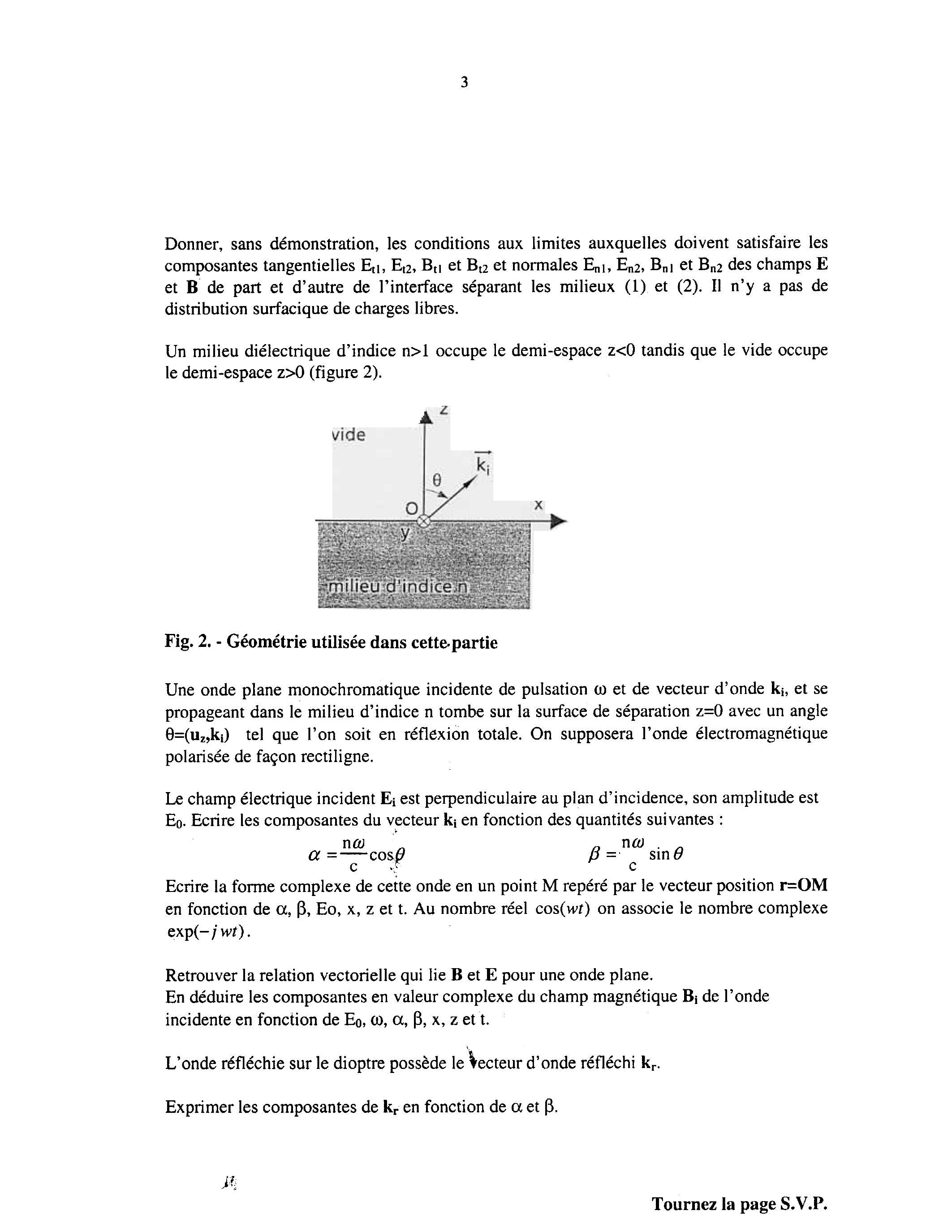 Un milieu diélectrique d'indice occupe le demi-espace tandis que le vide occupe le demi-espace (figure 2).