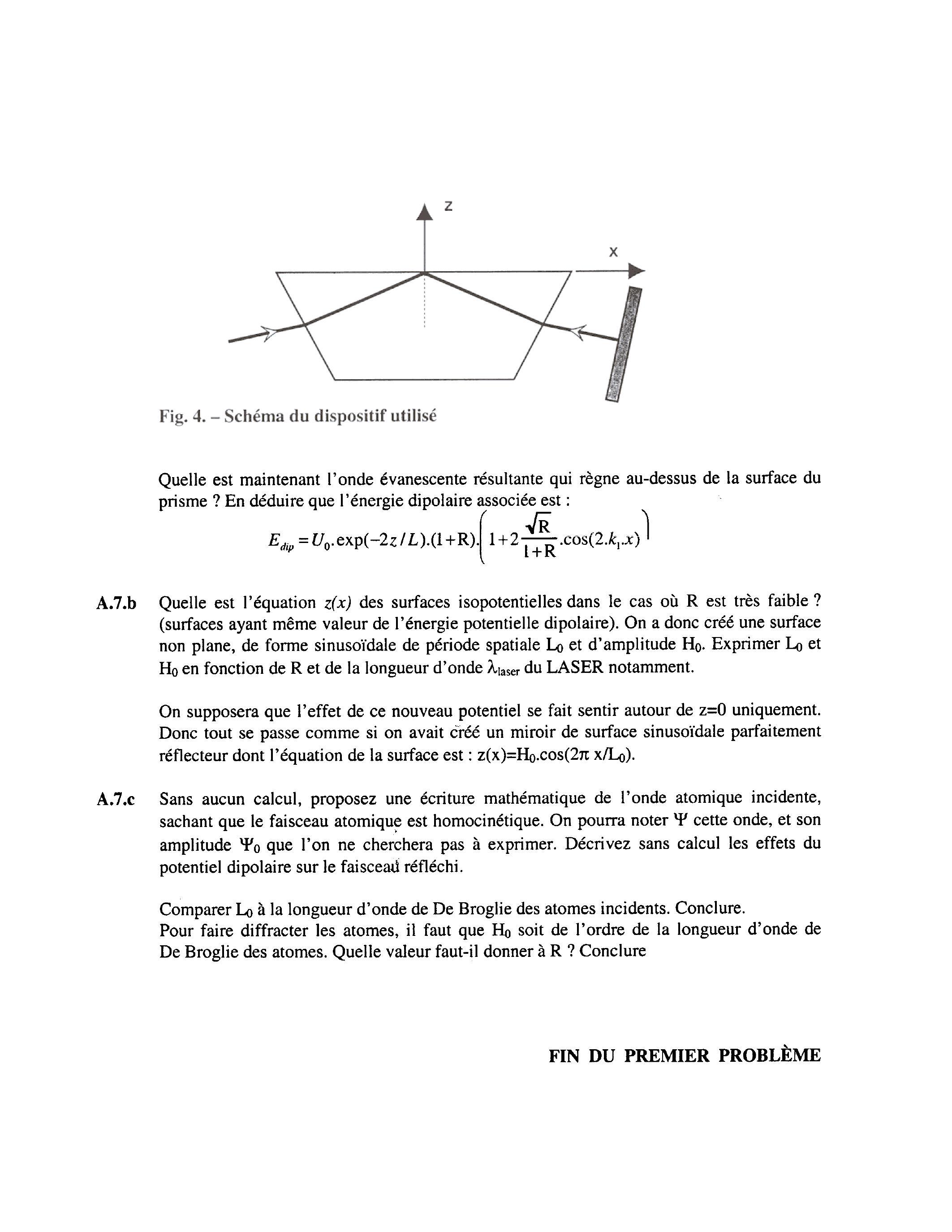 PROBLÈME A: PRINCIPE DU MIROIR À ATOMES PAR CHAMP ÉVANESCENT :