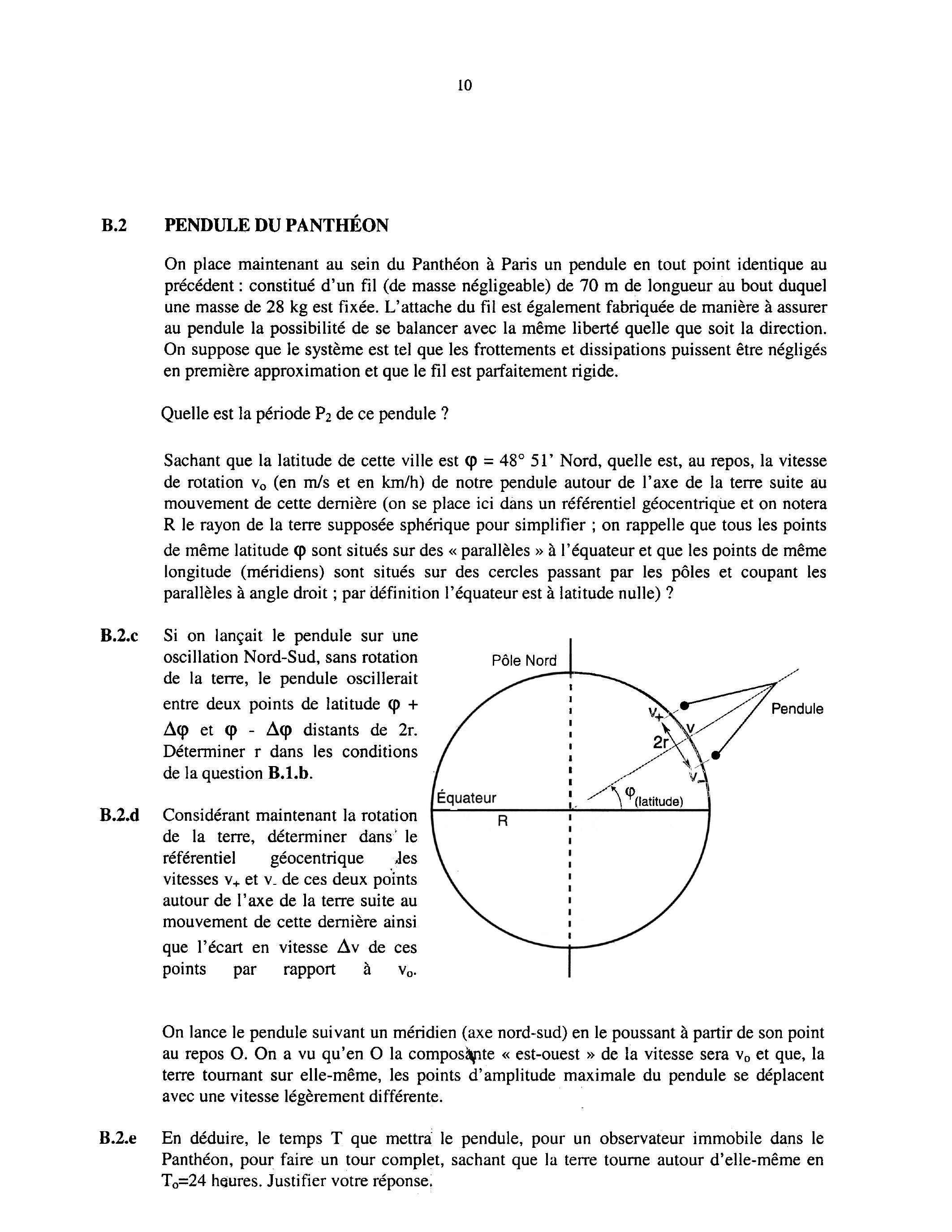B.2.c Si on lançait le pendule sur une oscillation Nord-Sud, sans rotation de la terre, le pendule oscillerait entre deux points de latitude et distants de 2 r . Déterminer dans les conditions de la question B.1.b.