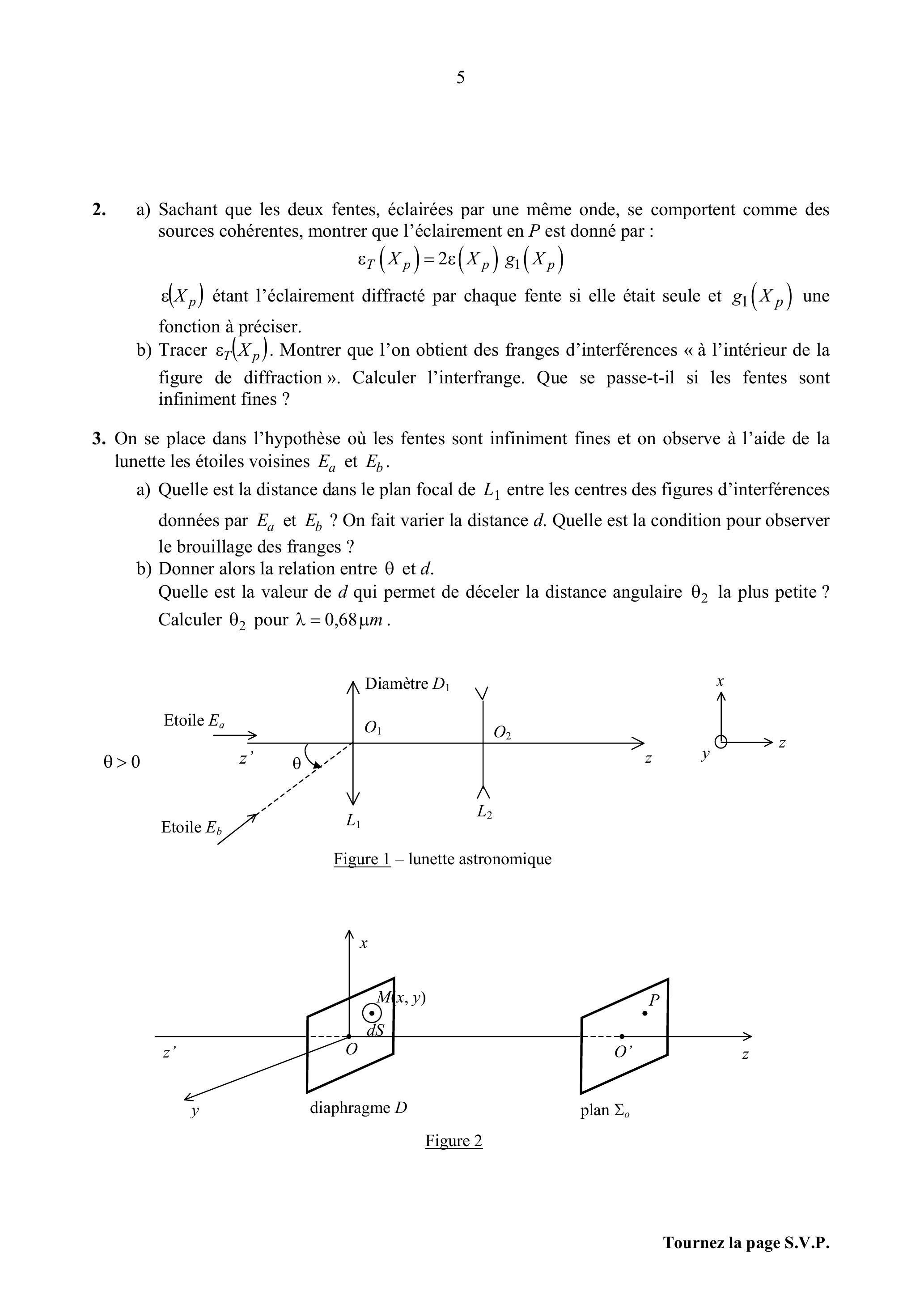Ce problème traite de l'observation de deux étoiles et à l'aide d'une lunette astronomique munie d'un détecteur. Les deux étoiles et sont considérées ponctuelles et à l'infini, séparées par une distance angulaire , l'étoile étant située dans la direction de l'axe optique de la lunette.