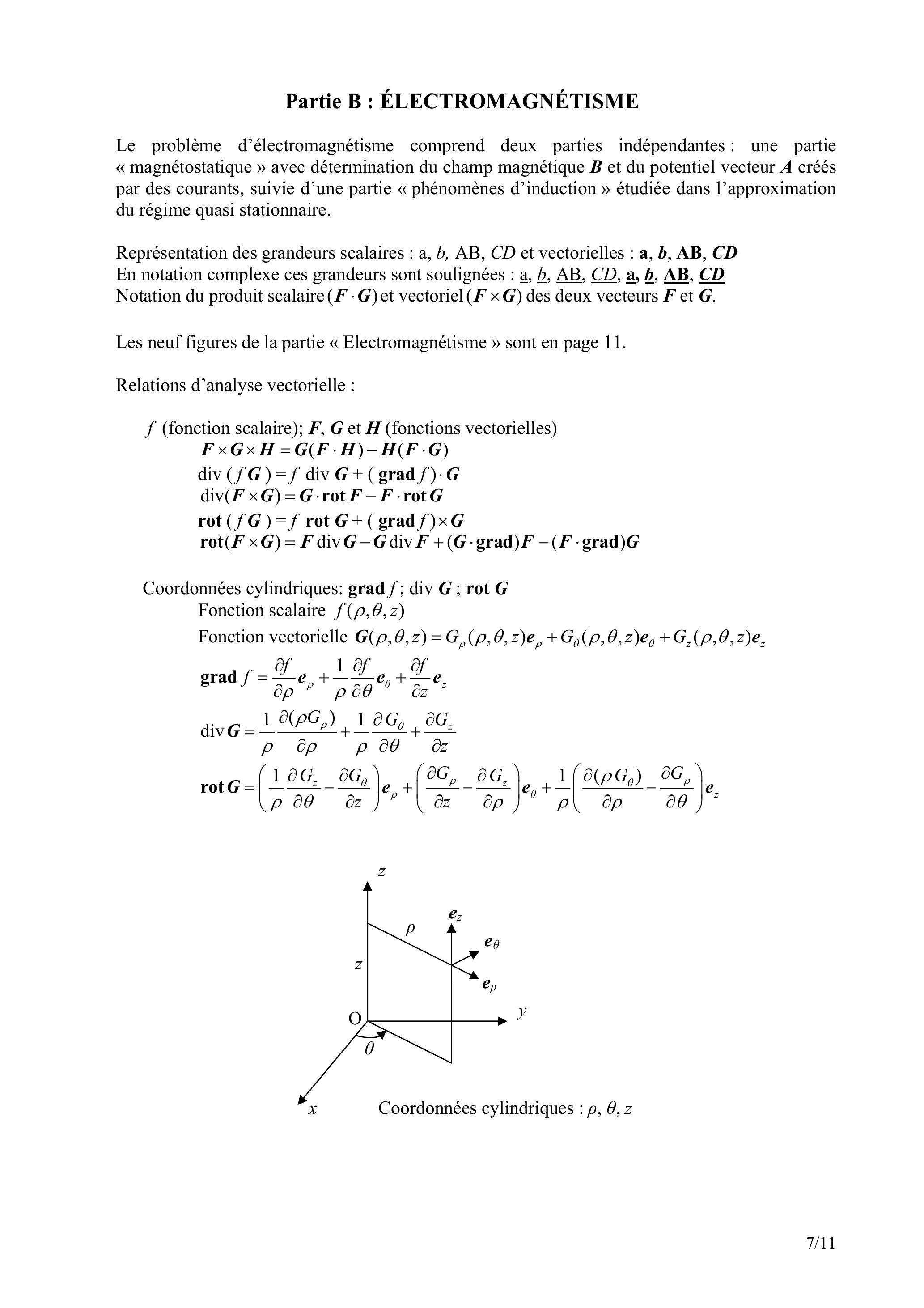 Le problème d'électromagnétisme comprend deux parties indépendantes: une partie «magnétostatique» avec détermination du champ magnétique et du potentiel vecteur créés par des courants, suivie d'une partie «phénomènes d'induction» étudiée dans l'approximation du régime quasi stationnaire.