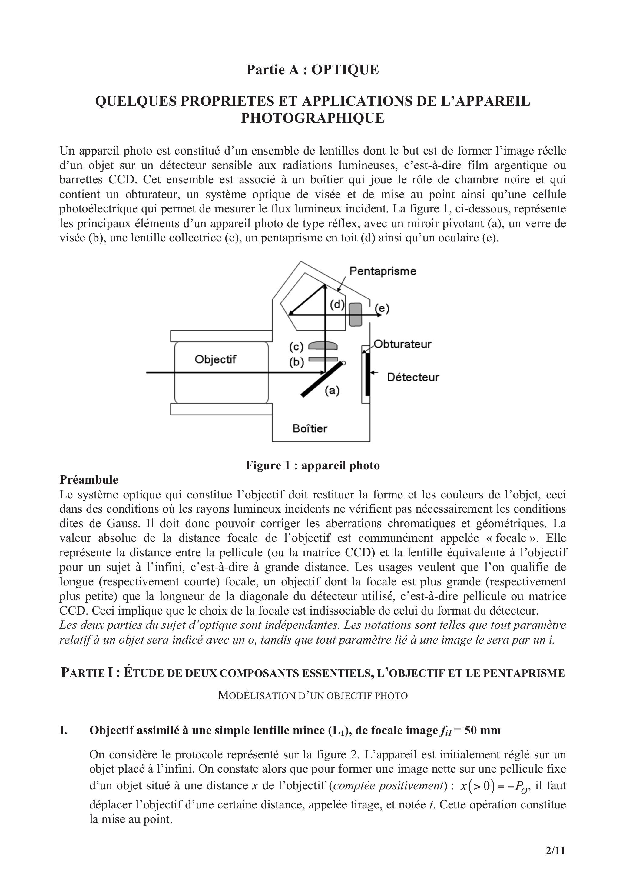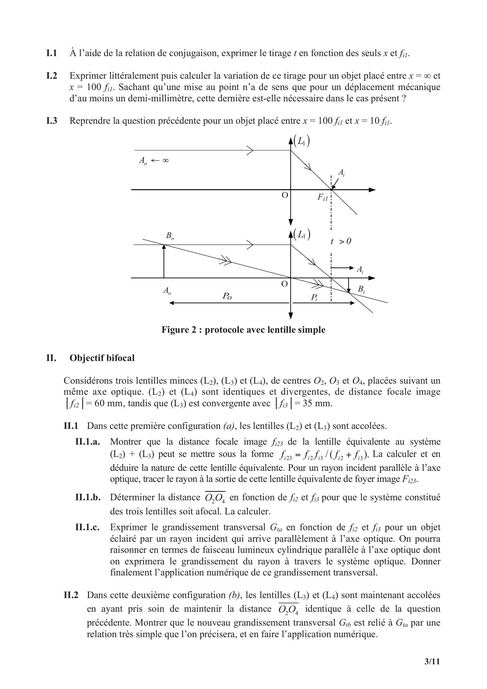 Les deux parties du sujet d'optique sont indépendantes. Les notations sont telles que tout paramètre relatif à un objet sera indicé avec un o, tandis que tout paramètre lié à une image le sera par un i.