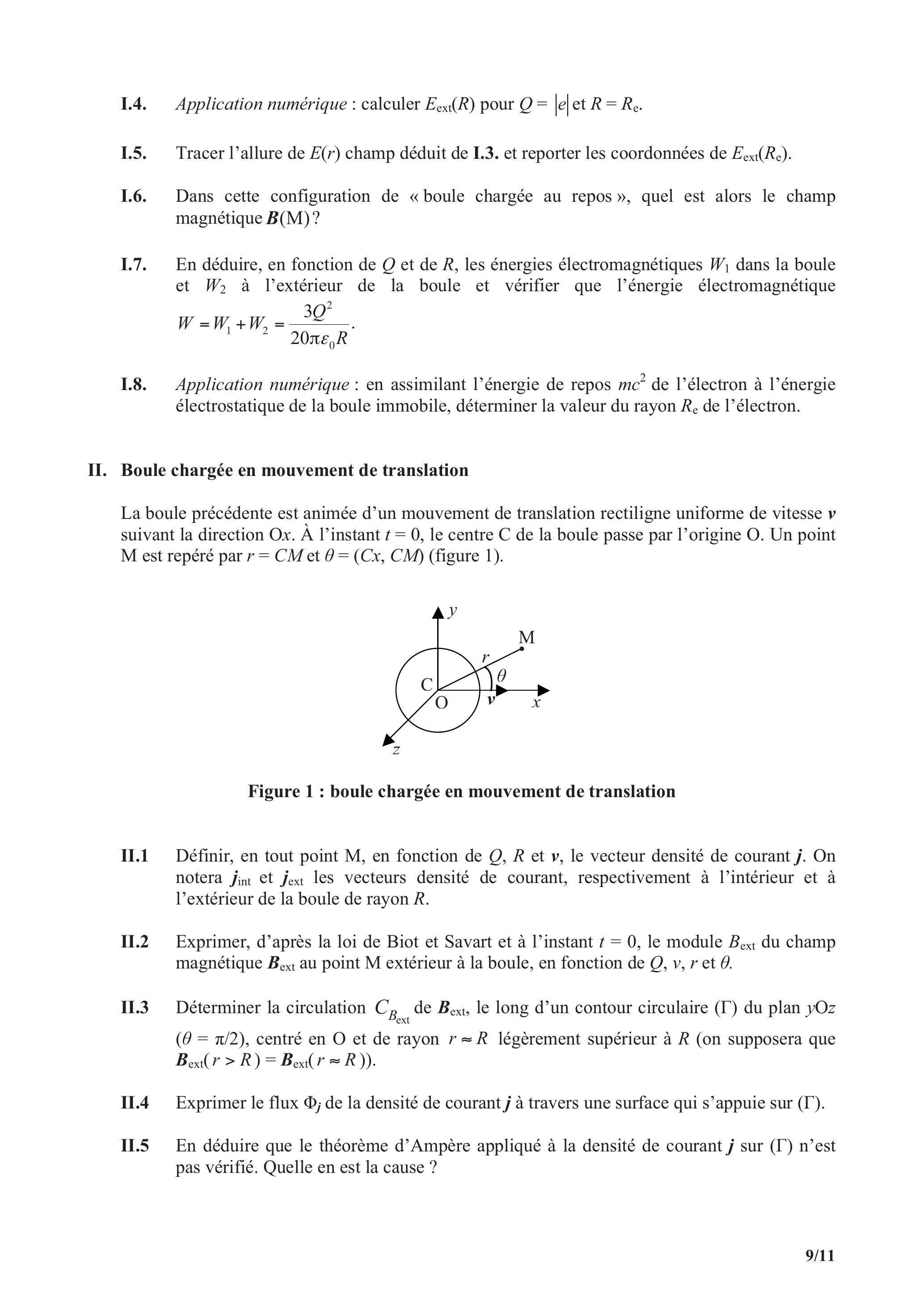 Ce problème, composé de trois parties, propose la détermination du champ magnétique pour une boule chargée dans différentes configurations. L'assimilation de cette boule chargée à l'électron permettra, dans quelques applications, d'approcher la valeur du rayon de l'électron.