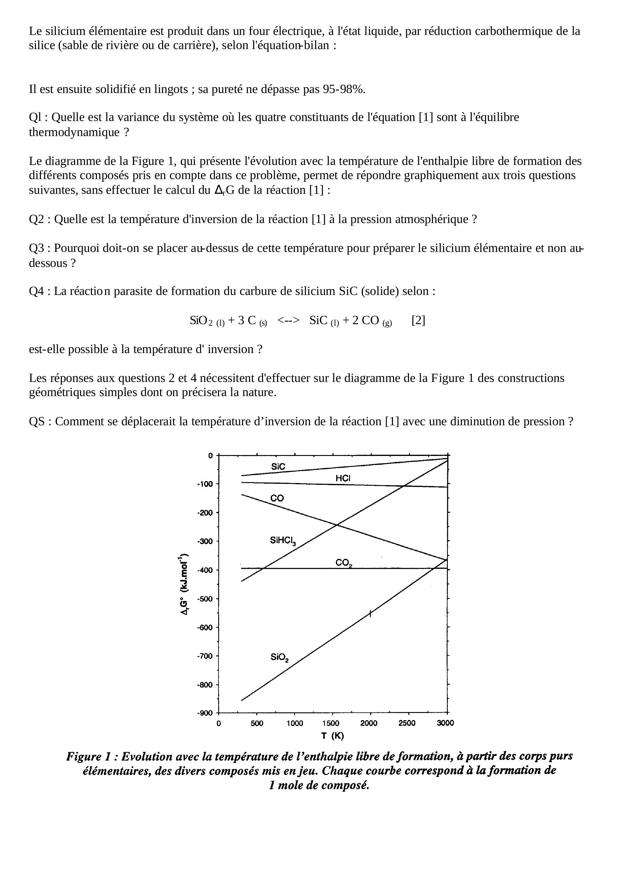 Q3 : Pourquoi doit-on se placer au-dessus de cette température pour préparer le silicium élémentaire et non aut dessous?
