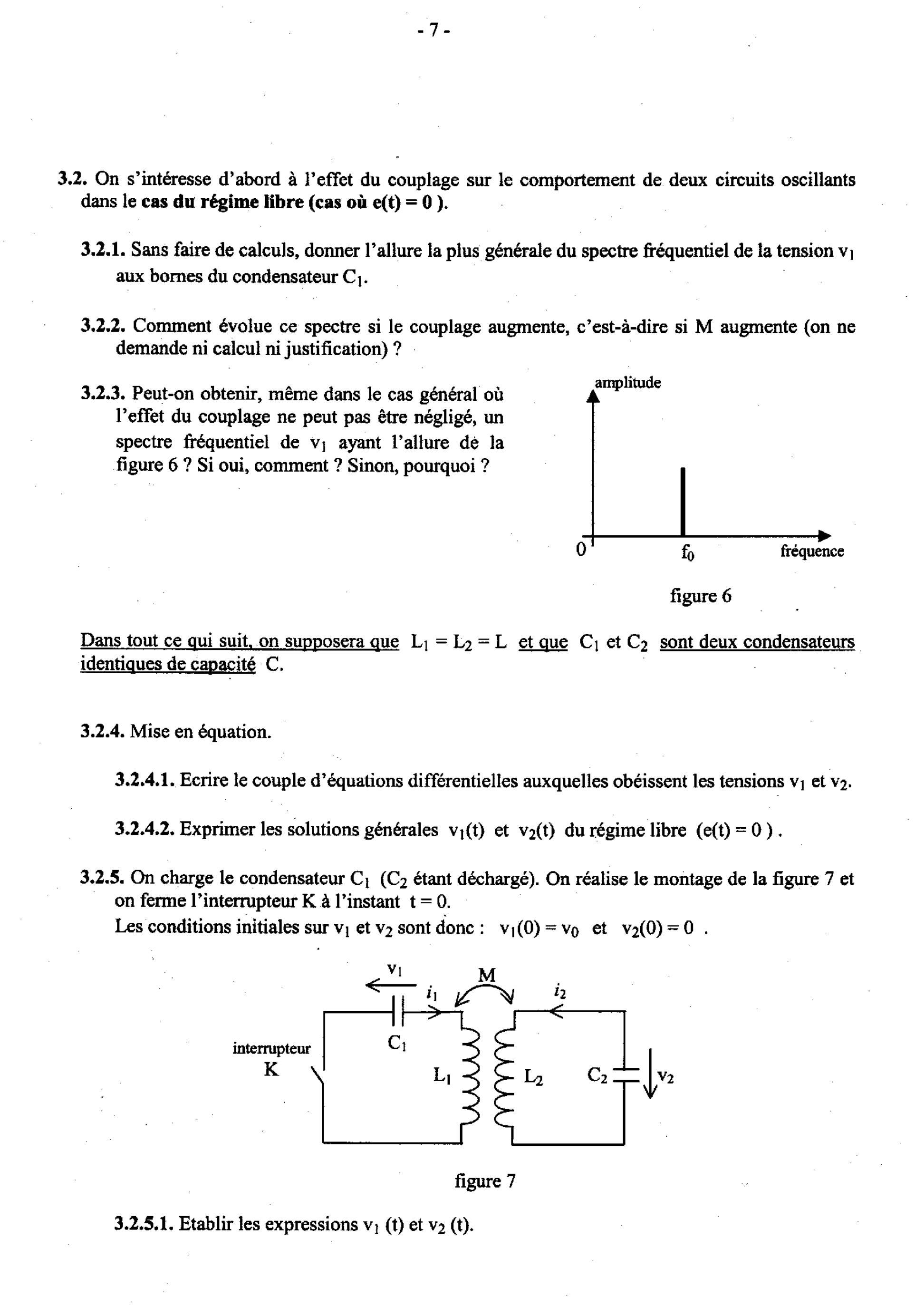 3.2. On s'intéresse d'abord à l'effet du couplage sur le comportement de deux circuits oscillants dans le cas du régime libre (cas où ).