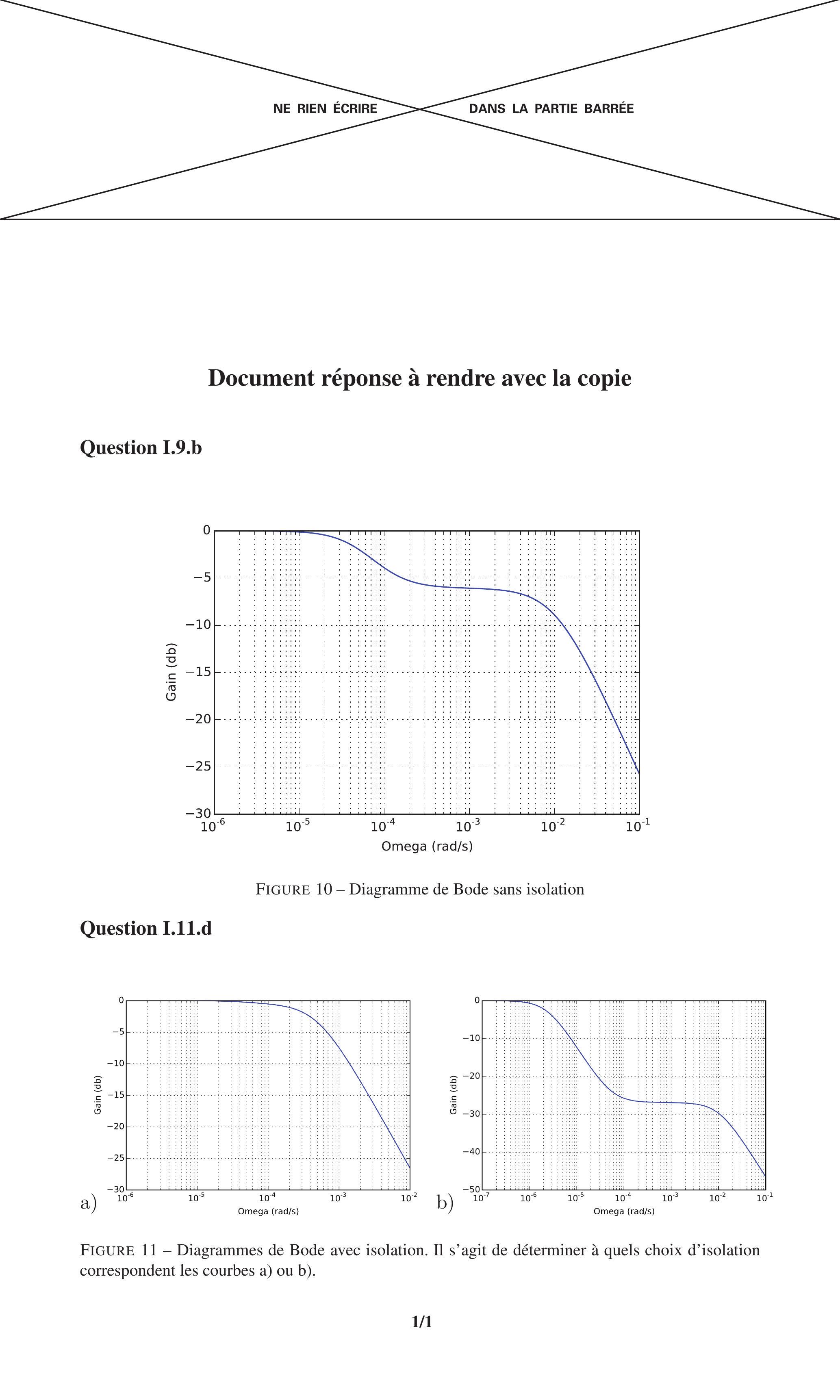 Figure 11 - Diagrammes de Bode avec isolation. Il s'agit de déterminer à quels choix d'isolation correspondent les courbes a) ou b).