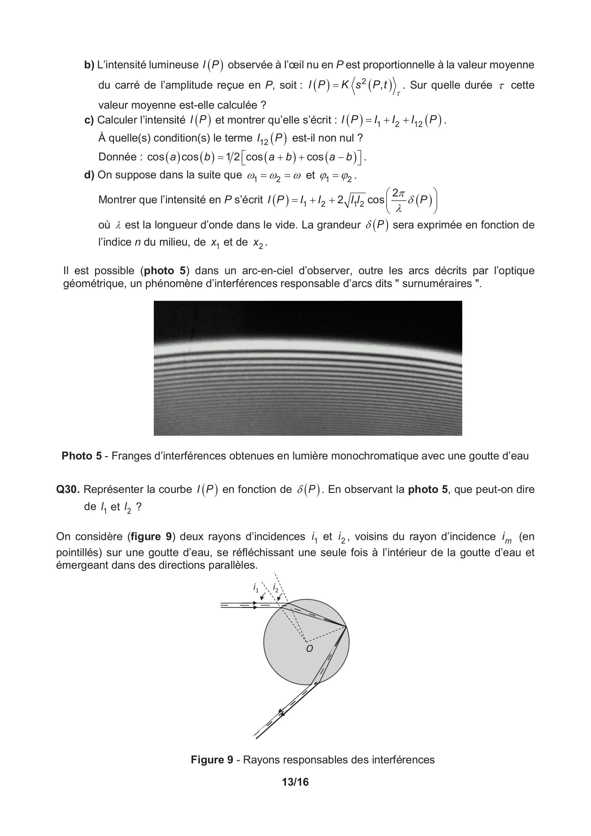 Ensuite, dans les parties VI (optique géométrique) et VII (interférences), on étudie les phénomènes optiques engendrés par les gouttes d'eau éclairées par le Soleil.