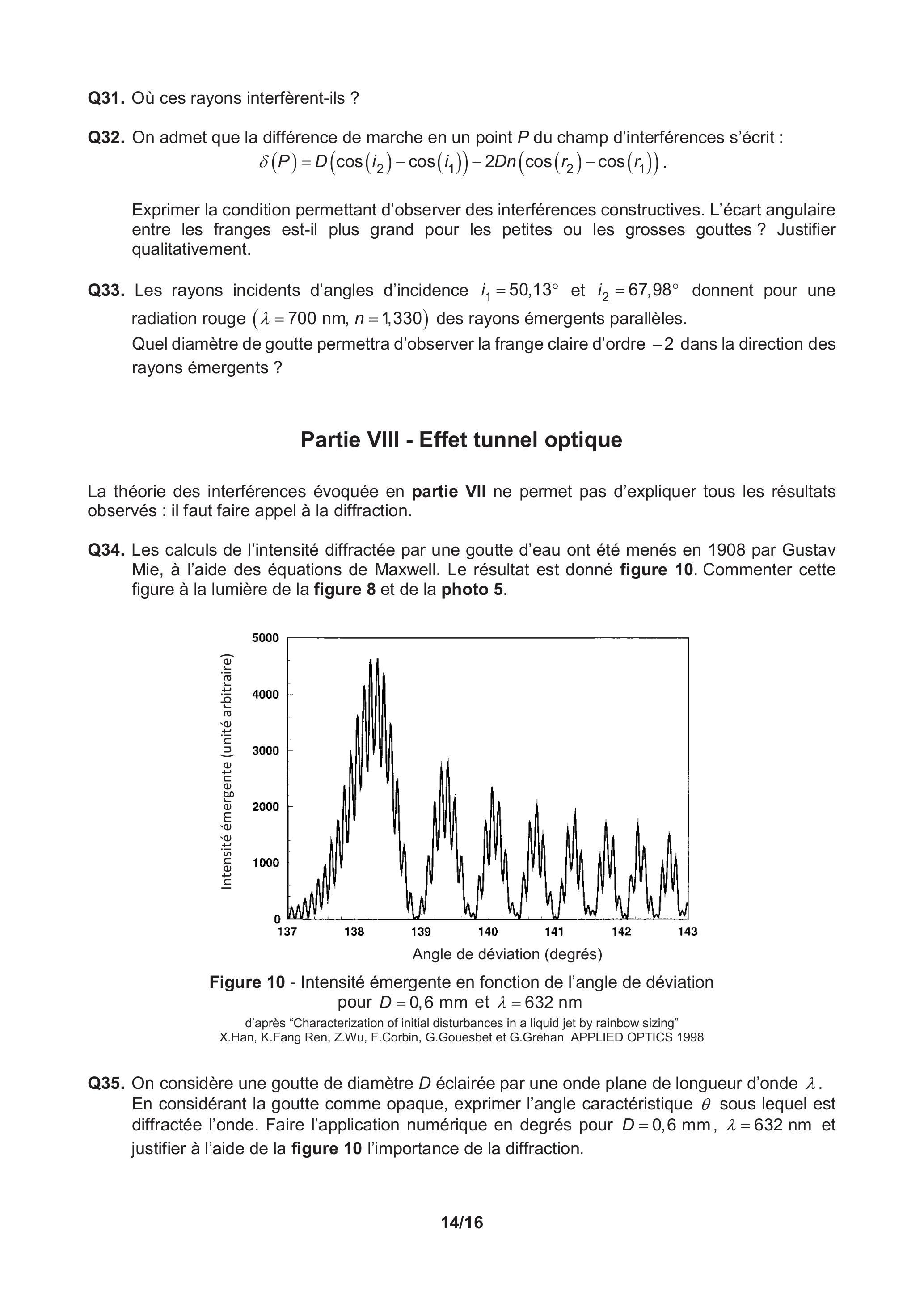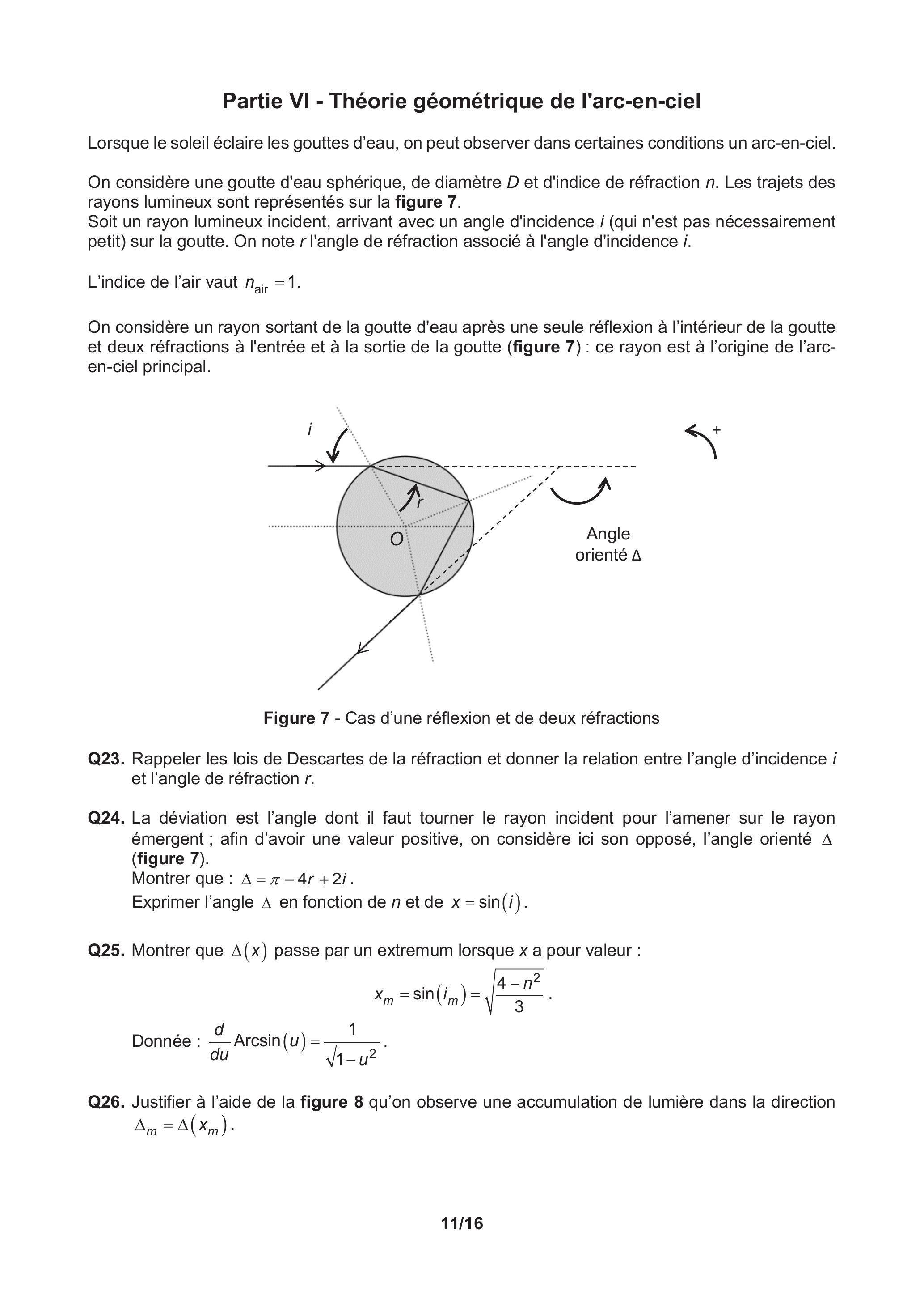 Ensuite, dans les parties VI (optique géométrique) et VII (interférences), on étudie les phénomènes optiques engendrés par les gouttes d'eau éclairées par le Soleil.