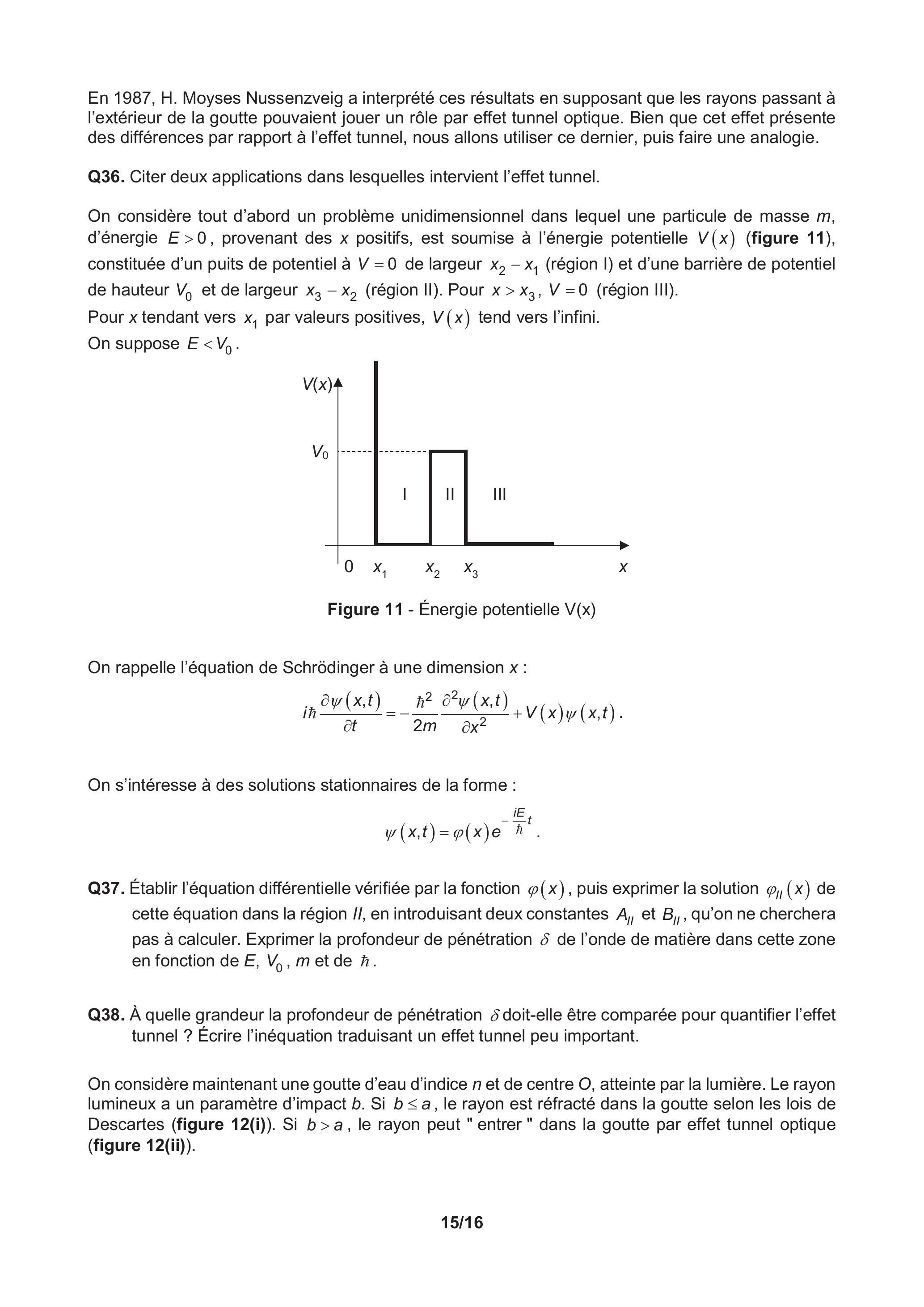 Q36. Citer deux applications dans lesquelles intervient l'effet tunnel.