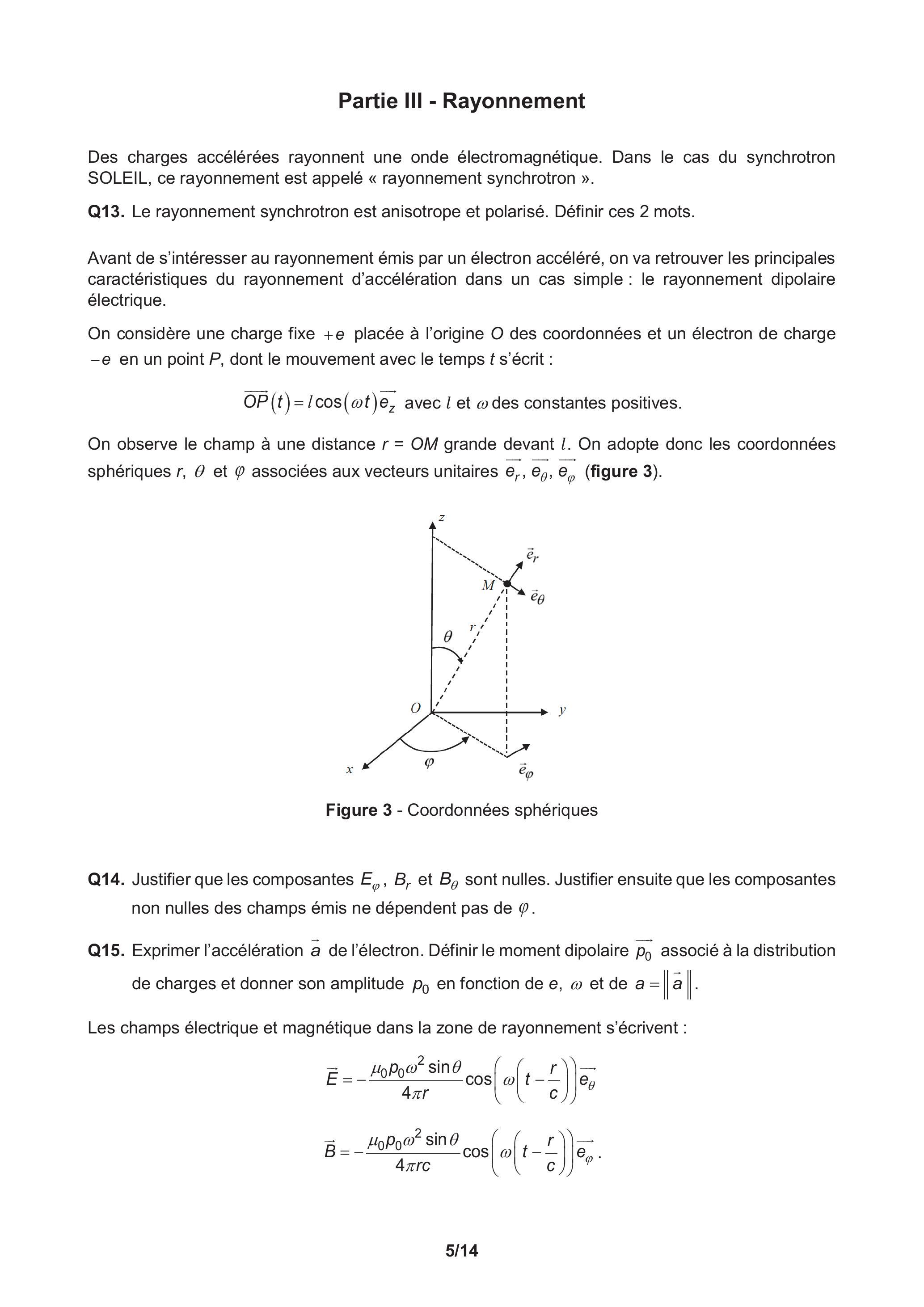 Q14. Justifier que les composantes et sont nulles. Justifier ensuite que les composantes non nulles des champs émis ne dépendent pas de .
