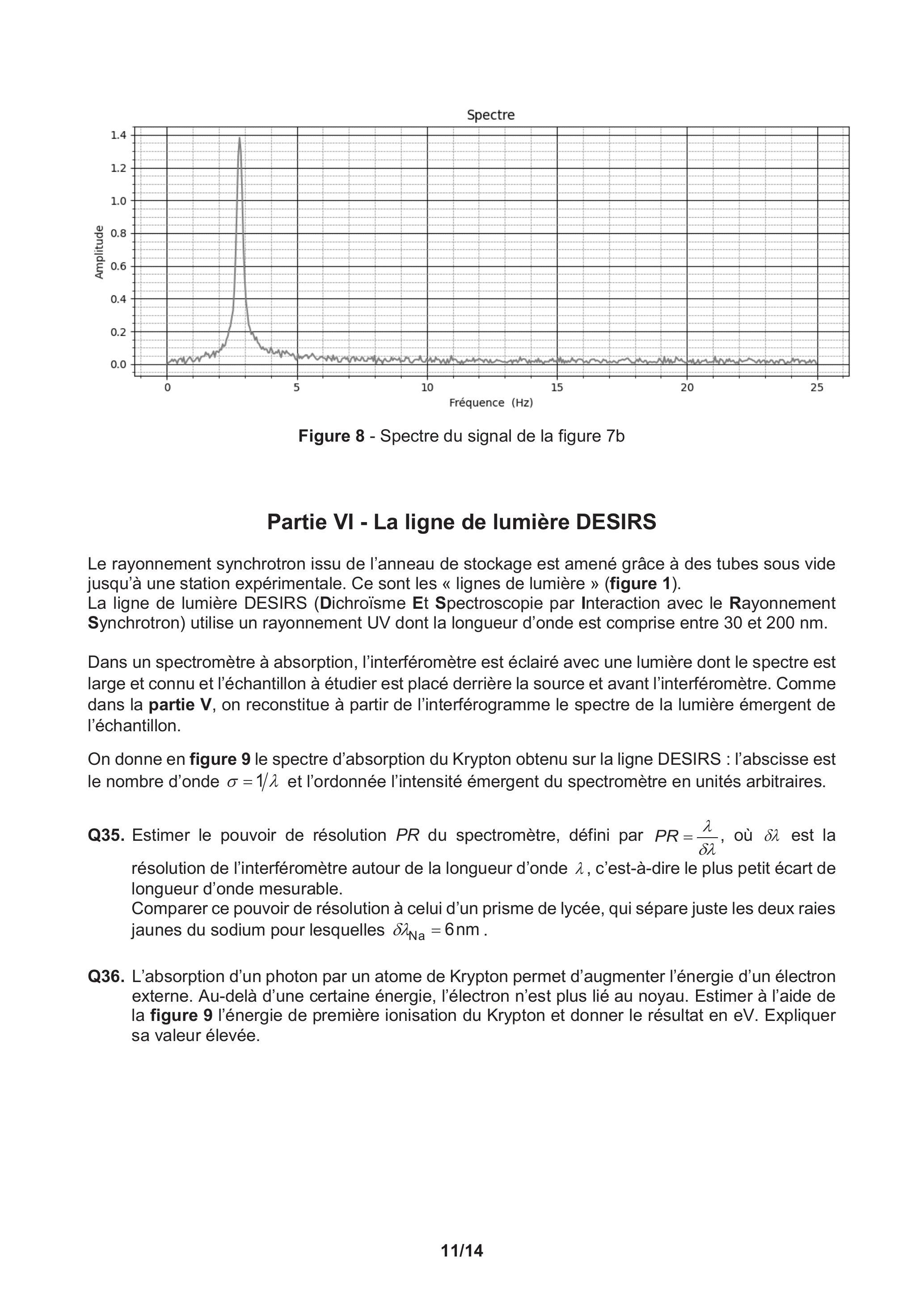 Il est constitué de 6 parties qui peuvent être résolues de manière indépendante les unes des autres. Après la partie I qui traite de généralités, la partie II étudie la déviation des électrons, la partie III le rayonnement émis, la partie IV la directivité et le spectre du rayonnement, la partie le principe de la spectrométrie par transformée de Fourier et la partie VI une application en spectrométrie.