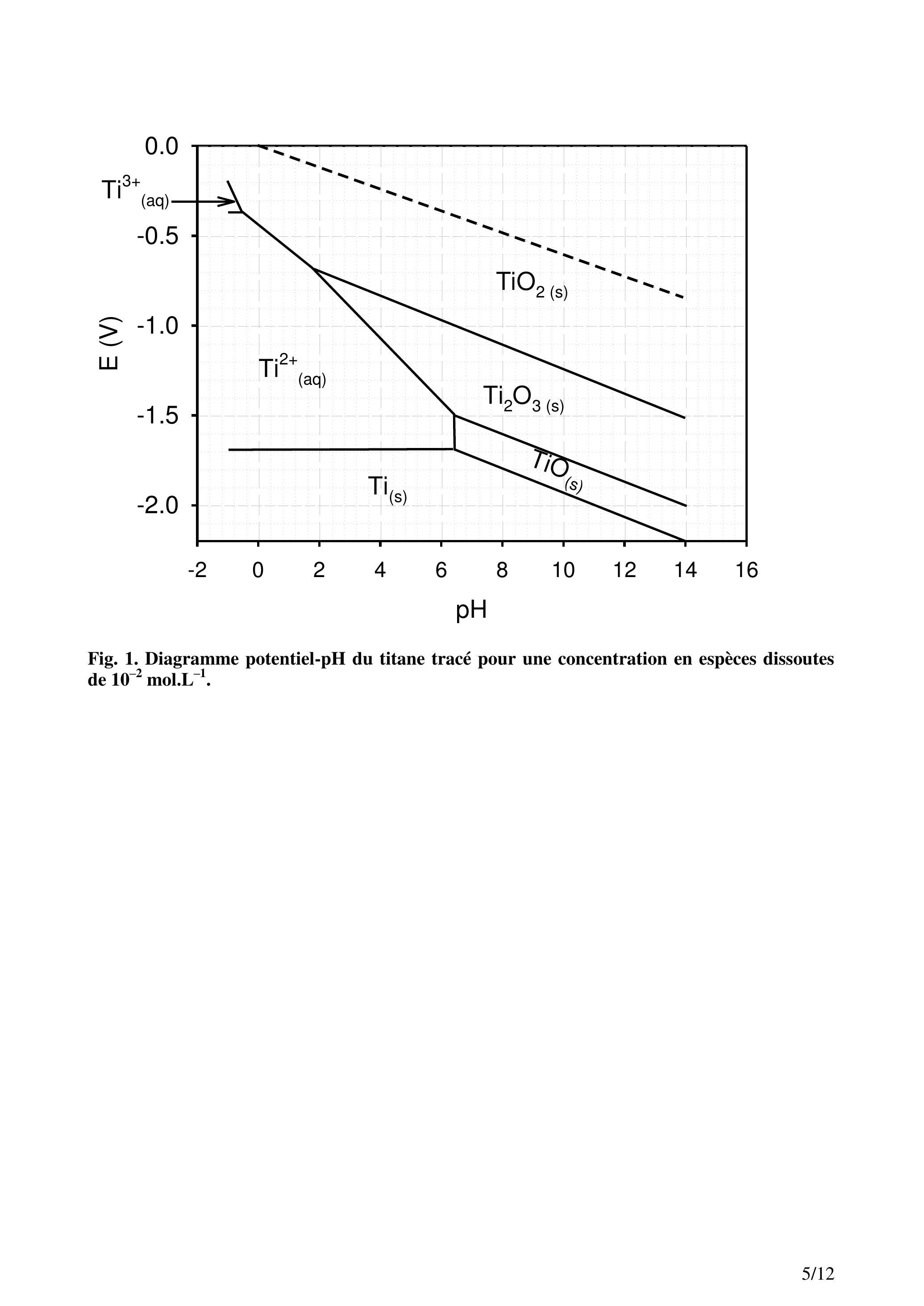 Fig. 1. Diagramme potentiel-pH du titane tracé pour une concentration en espèces dissoutes de mol. .